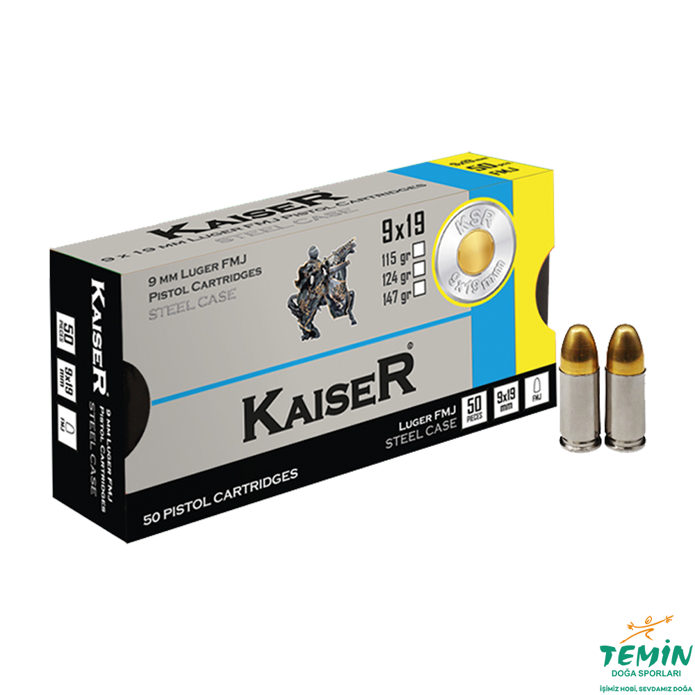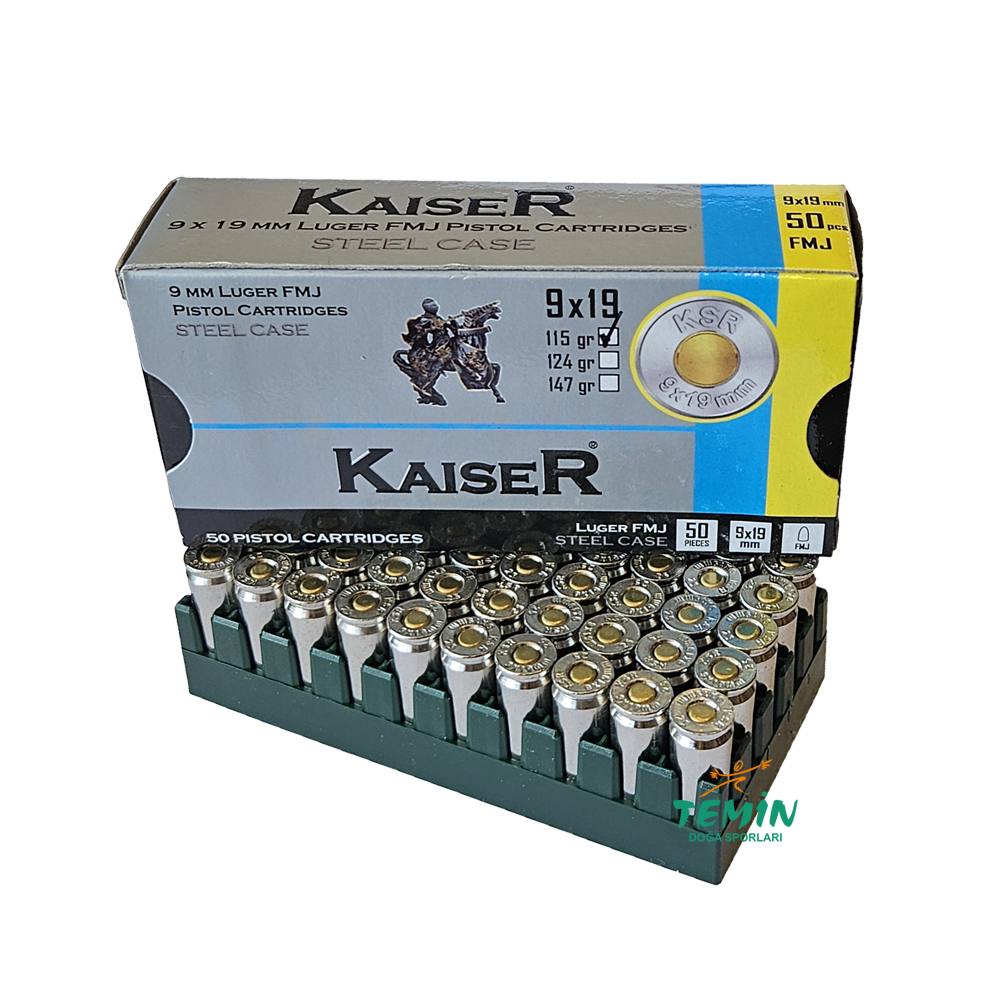 9x19 mm (Luger) Kaıser FMJ-115 Grn. Çelik Kovan Tabanca Fişeği