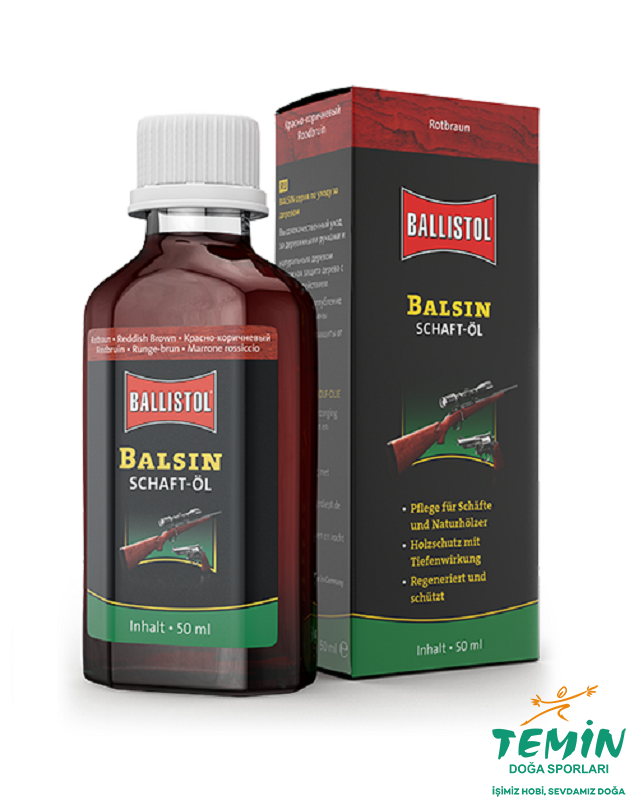 Ballistol Balsin kırmızımsı kahverengi şaftöl, ceviz kundak ve diğer doğal ahşaplarda kullanılan; ahşabı su itici hale getirmeye, damar görünümünü derinleştirmeye ve kırmızımsı-kahverengi ton vermeye yardımcı bir bakım yağıdır.