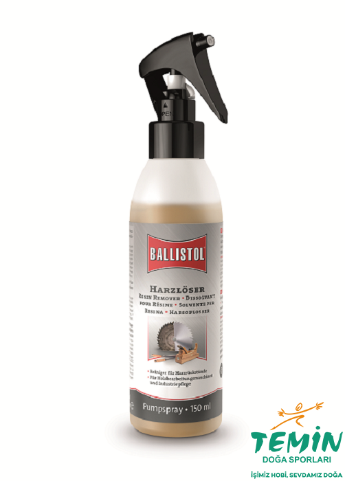 Ballistol Resin Remover; testere bıçakları, keskiler, rendeler ve motorlu testere gibi ekipmanlarda biriken reçine/yanık kalıntılarını hızlıca çözmeye yardımcı olur. Köpürerek yüzeye tutunur; uygulaması basittir: püskürt, 1 dakika beklet, sil.