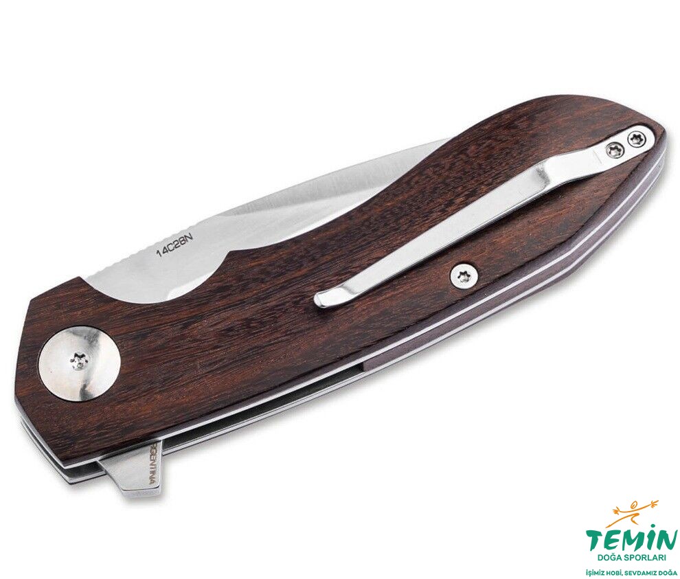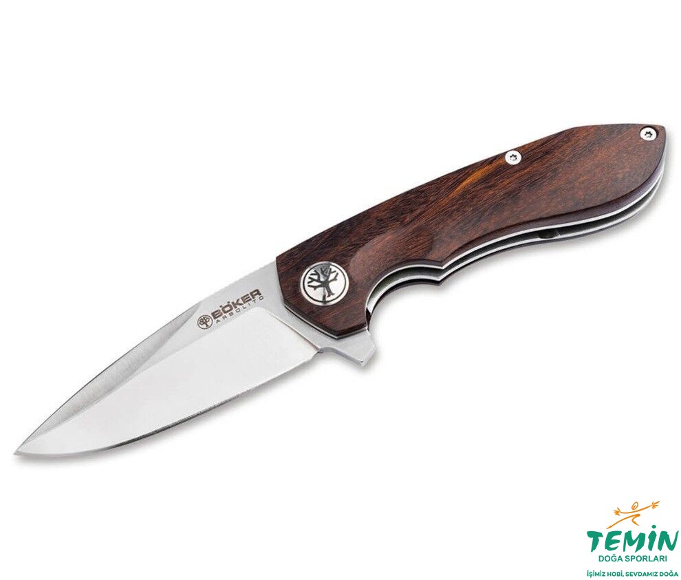 Görsel olarak öne çıkan unsur, bıçak eksen vidasının kapağını süsleyen ve bıçağın rustik Stonewash kaplamasını vurgulayan dünyaca ünlü Böker ağacıdır. Taşıma klipsi (Tip-Up/r) ve dayanıklı Cordura'dan yapılmış tam oturan kılıf ile birlikte sunulur. Arjantin'deki Böker Arbolito Bıçak Fabrikası'nda el yapımıdır.