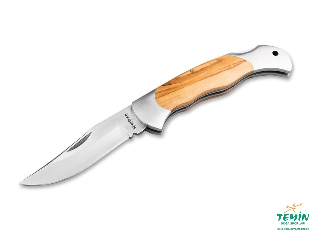 Arkadan kilitli (lockback) çakının sapında, paslanmaz çelik astar ve balçaklar görev yapmaktadır. Sap malzemesi olarak zeytin ağacı kullanılmıştır. Zeytin ağacı bıçak saplarında açık renk ahşap talebini karşılayan önemli bir malzemedir. Özellikle zeytinin yetiştiği Akdeniz bölgelerindeki bıçak imalatçılarının yoğunlukla kullandığı bu malzeme hem sertliği hem yoğunluğu hem suya dayanıklılığıyla hem de gri-sarı rengi ve tipik deseniyle, kullanışlı ve göz alıcıdır. Paslanmaz çelik balçaklar ile zeytin ağacı, aydınlık bir kontrast oluşturmaktadır. Çakı parçalarının bir araya getirilmesinde pimlerden faydalanılmıştır.