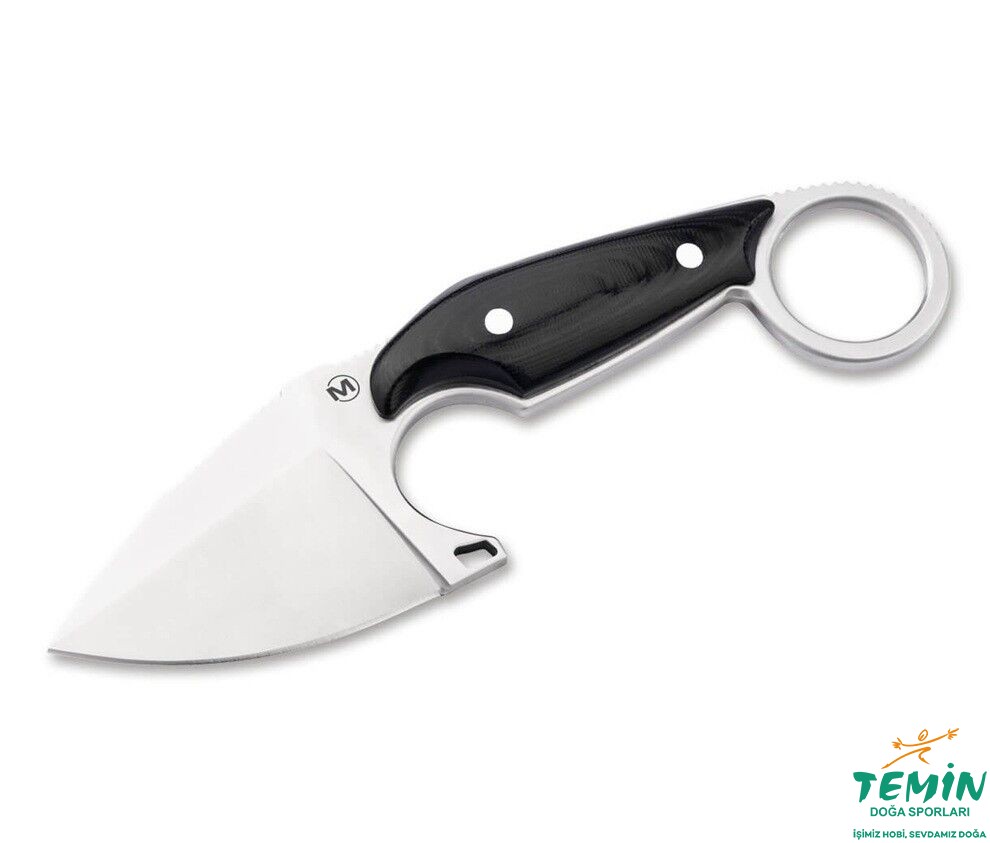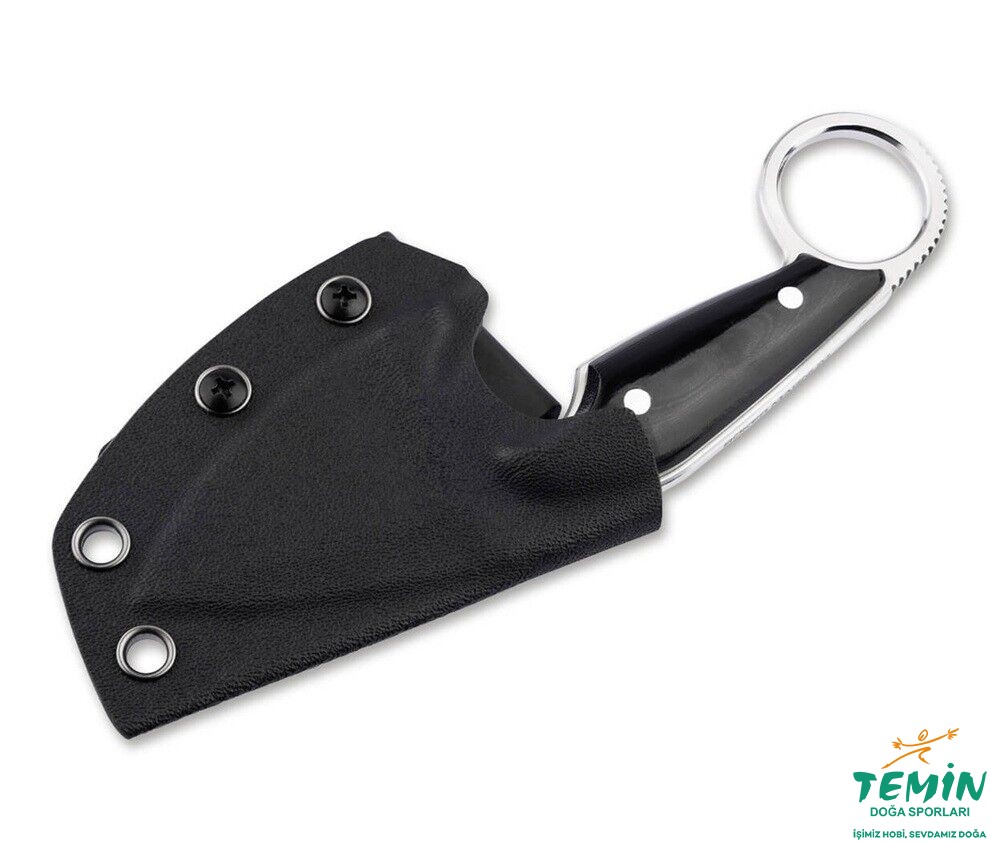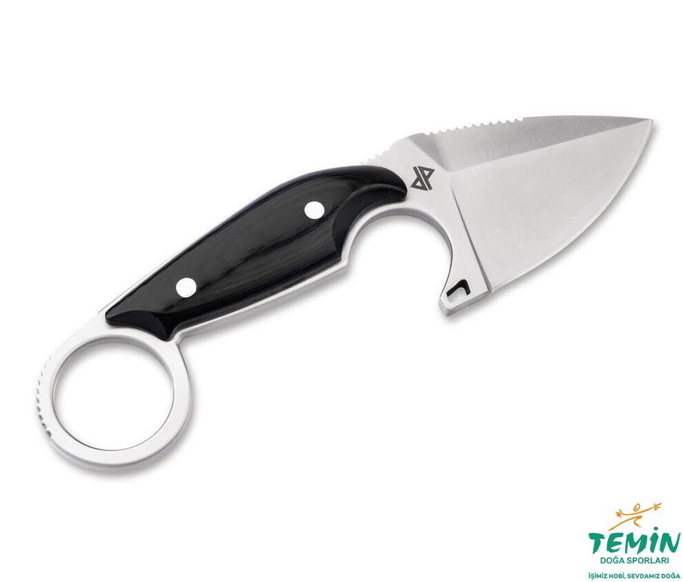 Bu kompakt bıçak, 440B'den yapılmış satine, sabit damla uçlu bıçağı ile karton kutuları keserken, ipleri keserken veya daha küçük açık hava etkinlikleri için maksimum beceri sergiler. Bıçağın arkasındaki full tang ve jimpingler, başparmak desteği ve sapın ucundaki karambitlere özgü halka, maksimum stabiliteyi ve tam kontrollü güçlü kesimleri garanti eder. Zarif bir şekilde işlenmiş siyah micarta kabza , mükemmel bir el pozisyonu sağlar.