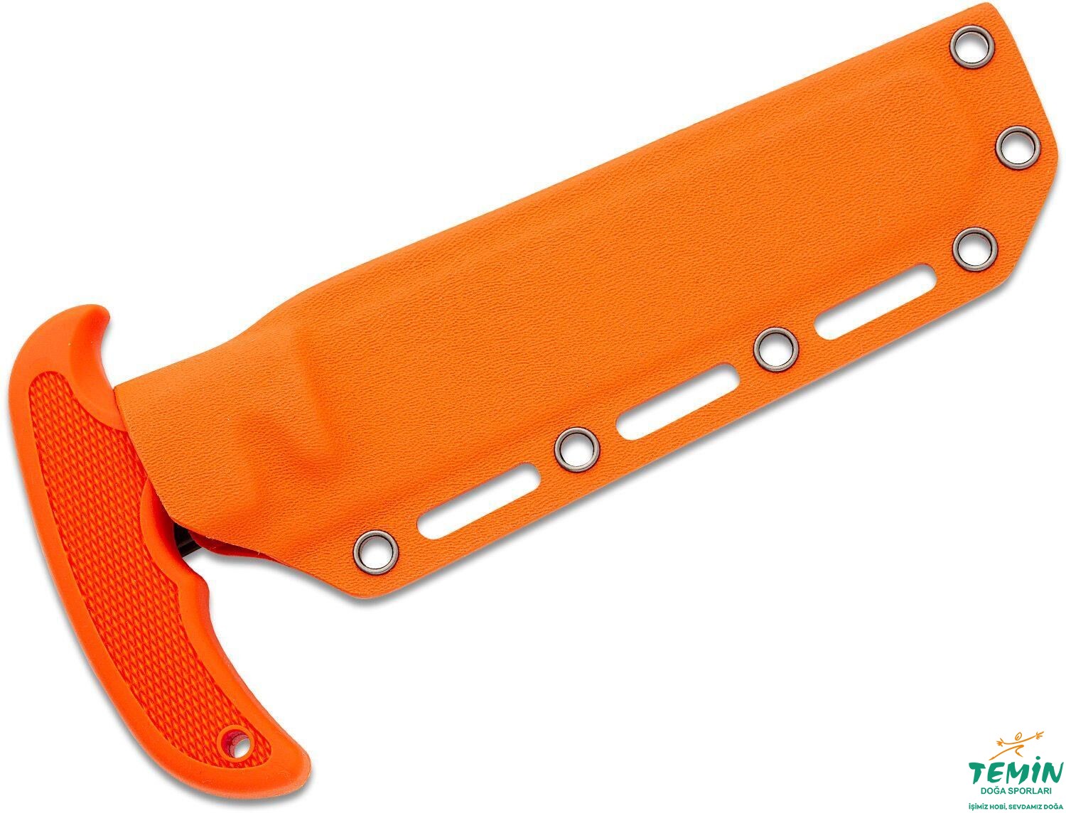 Magnum HL Fixed Processing Saw (02RY802), kemer askı aparatı (geçmeli plastik ve dönebilen) bulunan ve sapıyla aynı renkteki kydex kılıfıyla sunulmaktadır.