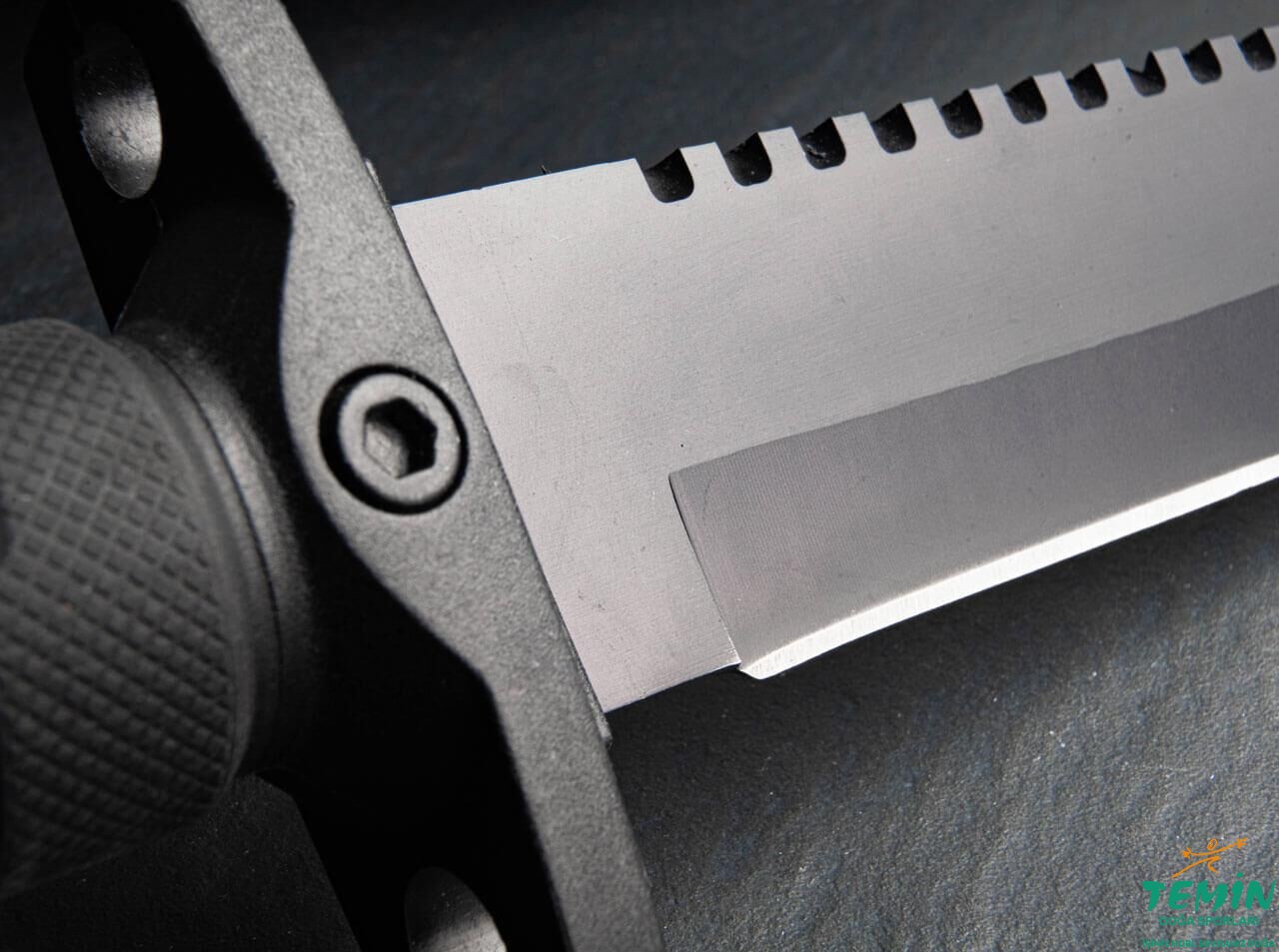 Rakip hamleleri çelmeye yarayan çapraz siper, elleri namludan da kesin olarak ayırmakta ve kullanım güvenliğine yüksek katkıda bulunmaktadır. Her iki yanında kordon deliği (lanyard hole) de bulunan söz konusu kısım sayesinde bıçağınızı diğer objelere sabitleyerek kullanım zenginliği (Örneğin bıçağı uzun bir çubuğa sabitleyerek mızrak olarak kullanabilirsiniz.) elde edebilirsiniz. Dip topuzu (pommel) üzerinde de kordon deliği mevcuttur.
