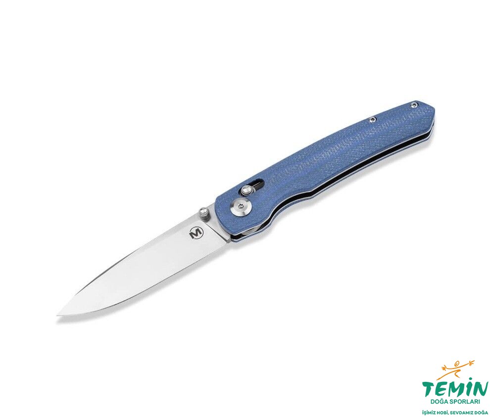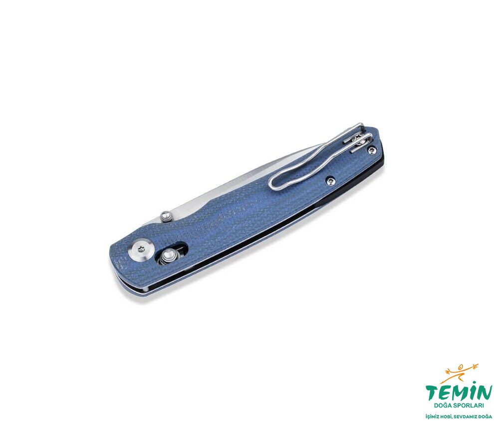 Mavi saplı Shango, başparmak pimiyle hızlı açılır; crossbar kilit güven verir. 440A saten drop point 87 mm namlu, 91 g hafiflik ve sağ tip-up klipsle cepte taşımaya hazır.