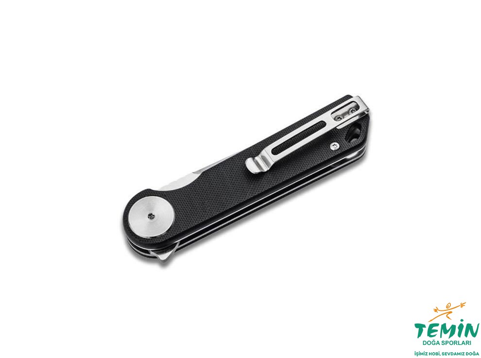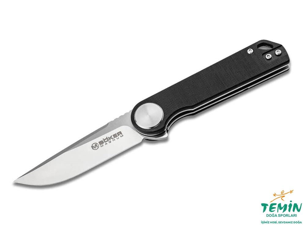 Böker Magnum Skruva; flipper açılışlı, linerlock kilitli ve dokulu G10 kabzalı kompakt bir EDC çakıdır; deep-carry klipsiyle günlük taşımaya uygundur.