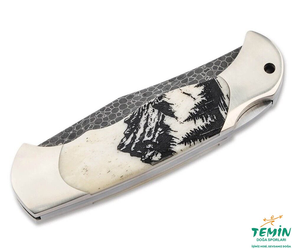 Konukları, Güney Afrikalı bıçak ustası Bertie Rietveld tarafından paslanmaz Şam çeliğinden büyüleyici Dragonskin deseniyle el yapımı olarak dövülmüş bir clippoint çakı ve beyaz kemik kaplamalı sinterlenmiş nikel gümüşten yapılmış bir sap gövdesi ile zengin bir sofra bekliyor. Özel bir özellik olarak, sapın her iki tarafında isme (Scout) uygun olarak ağaçlar ve dağlardan oluşan bir doğa motifi oyulmuş olup, ön tarafı da yıldönümü rakamlarını taşıyan bir bantla süslenmiştir. Her zamanki gibi, çakı tırnak çentiği kullanılarak açılır ve arka kilit ile kilitlenir. Boker Scout'un 40. yılı geleneksel olarak zamansız! Solingen'deki Boker fabrikasında el yapımıdır.