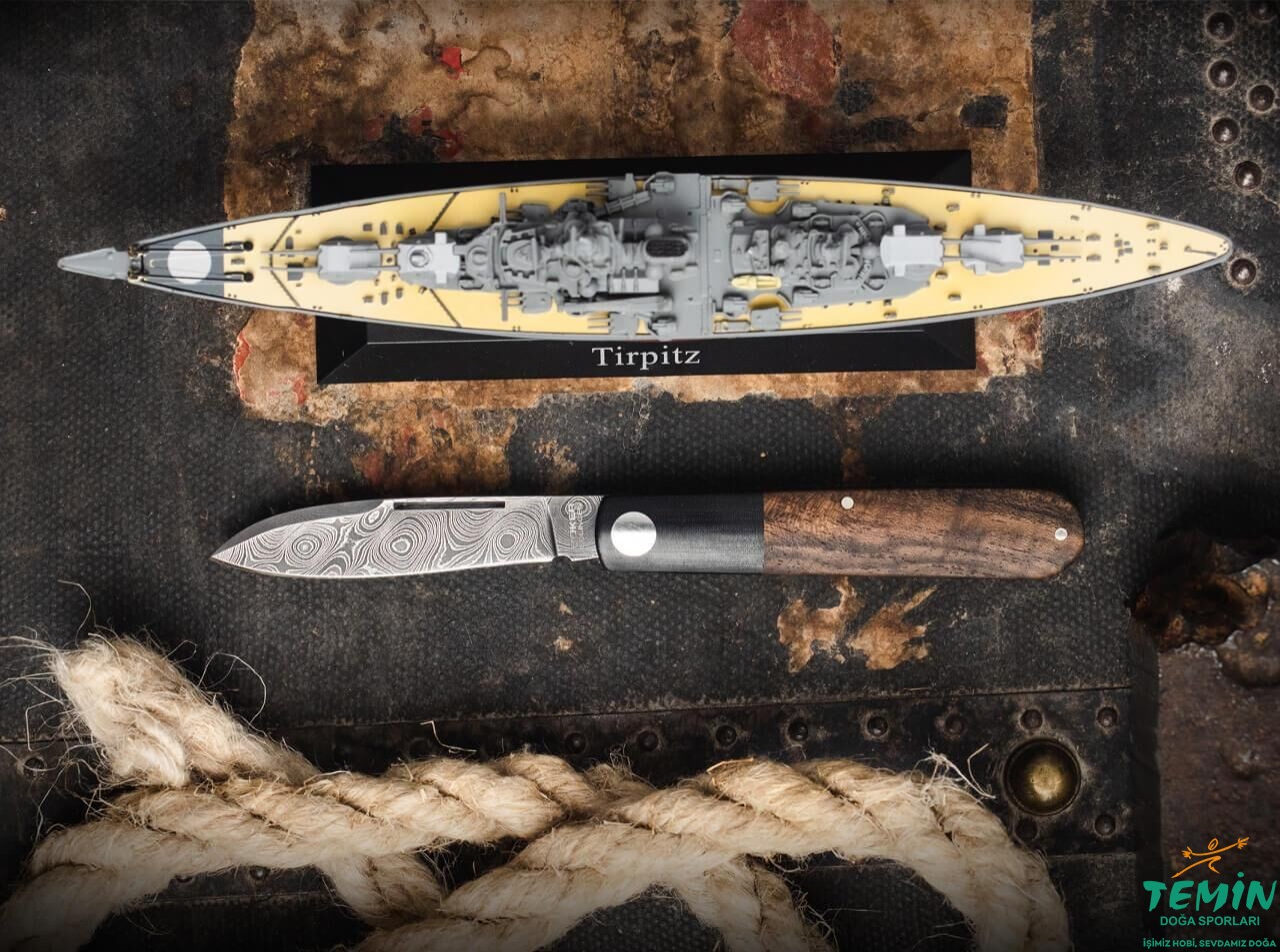 İzlediğiniz çakının namlusu, savaş gemisi Tirpitz’in zırhı kullanılarak dövülen Damascus çelikten imal edilmiştir.