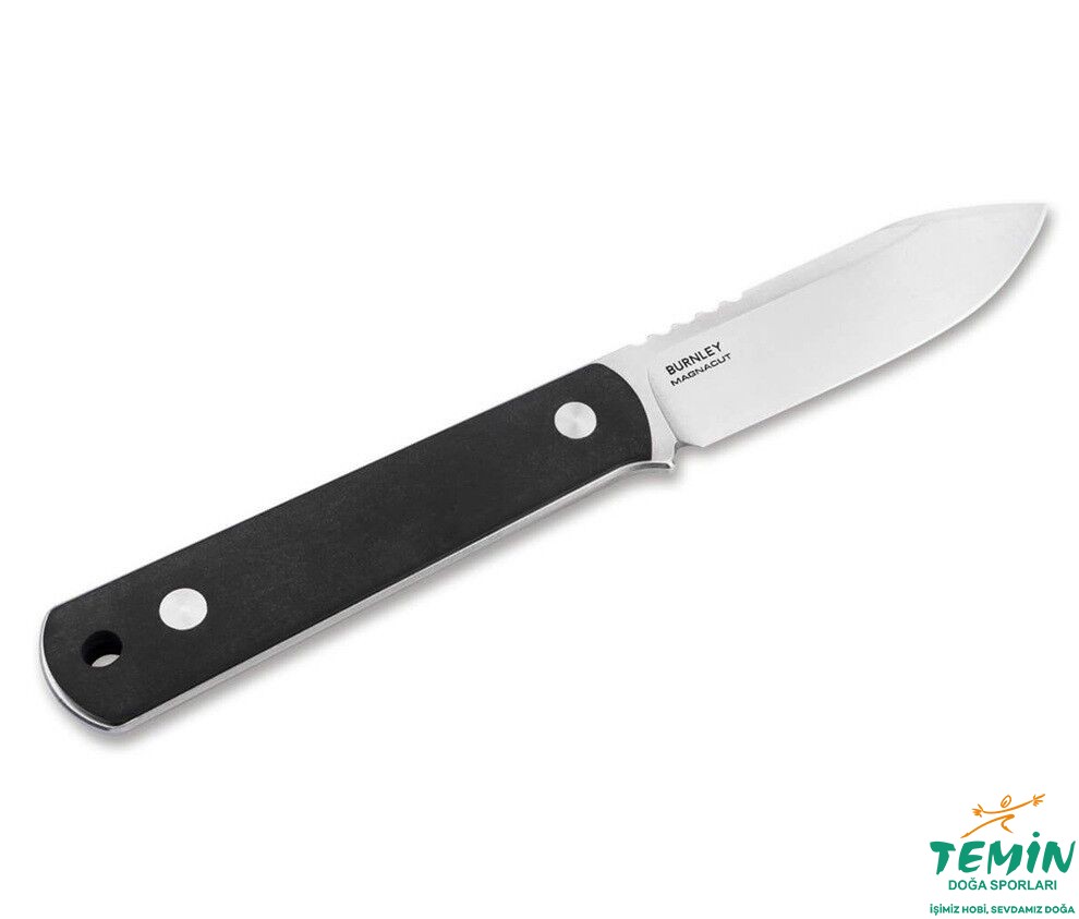Toz metalurjisi MagnaCut (61-62 HRC) ile üretilmiş, taş yıkama kaplamalı drop-point bıçaklı sağlam çelik yapı, olağanüstü kesme özellikleriyle maksimum stabilite sağlar. Sert, dayanıklı, korozyona dayanıklı ve sağlam - hiçbir bıçak daha fazla performans sunamaz. Bıçağın arkasındaki zarif ricasso ve belirgin jimpingler, sabit bıçağın çevik karakterini hem görsel hem de işlevsel olarak tamamlar. Tasarımcının post-taktik konsepti, sapta ağırlığı azaltan girintilerle şık bir şekilde uygulanmış ve ek bağlantı seçenekleriyle tam donanımlı bir boyun bıçağı olarak taktiksel iddiasını vurgulamaktadır.