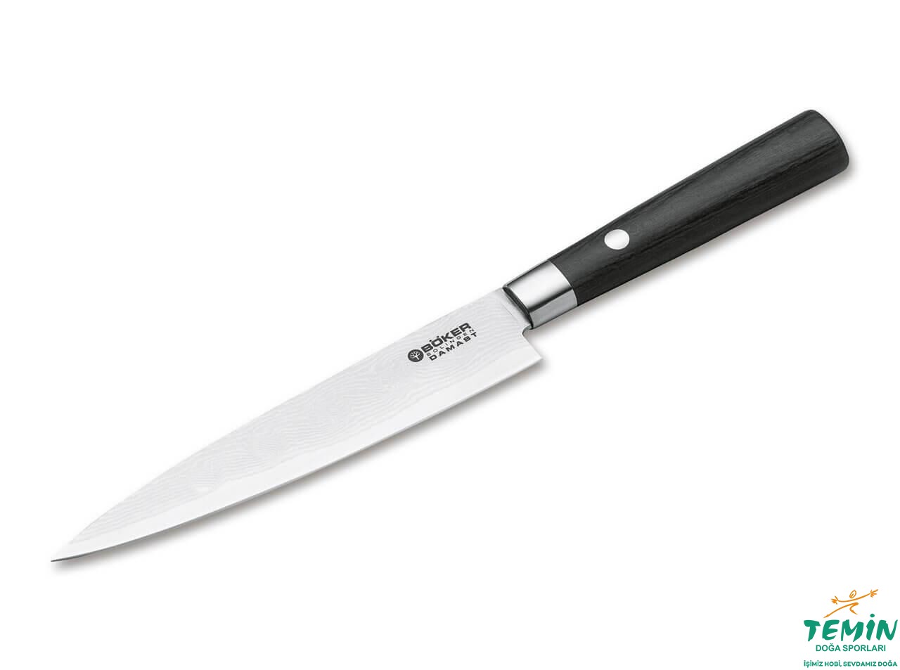 Böker Damascus Black mutfak bıçakları, en iyiye ulaşmak için, Japon ve Alman ekollerini bir araya getirmektedir. Geleneksel Japon stilini yansıtan bıçaklar, Solingen el üretimidir.