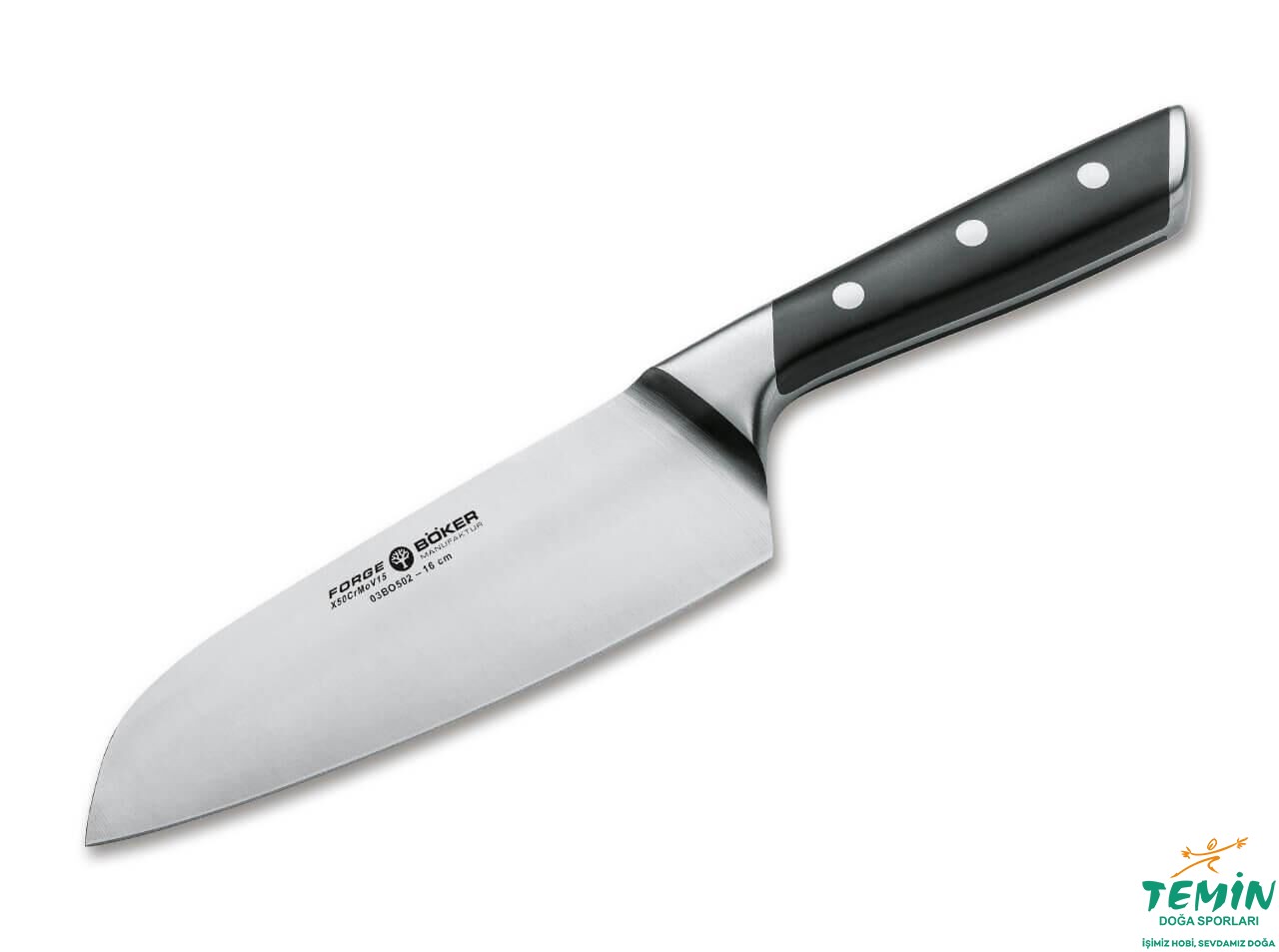 Cazip fiyatlı ve yüksek performanslı Böker Forge Santoku, şık hediye kutusu (karton) içinde sunulmaktadır.