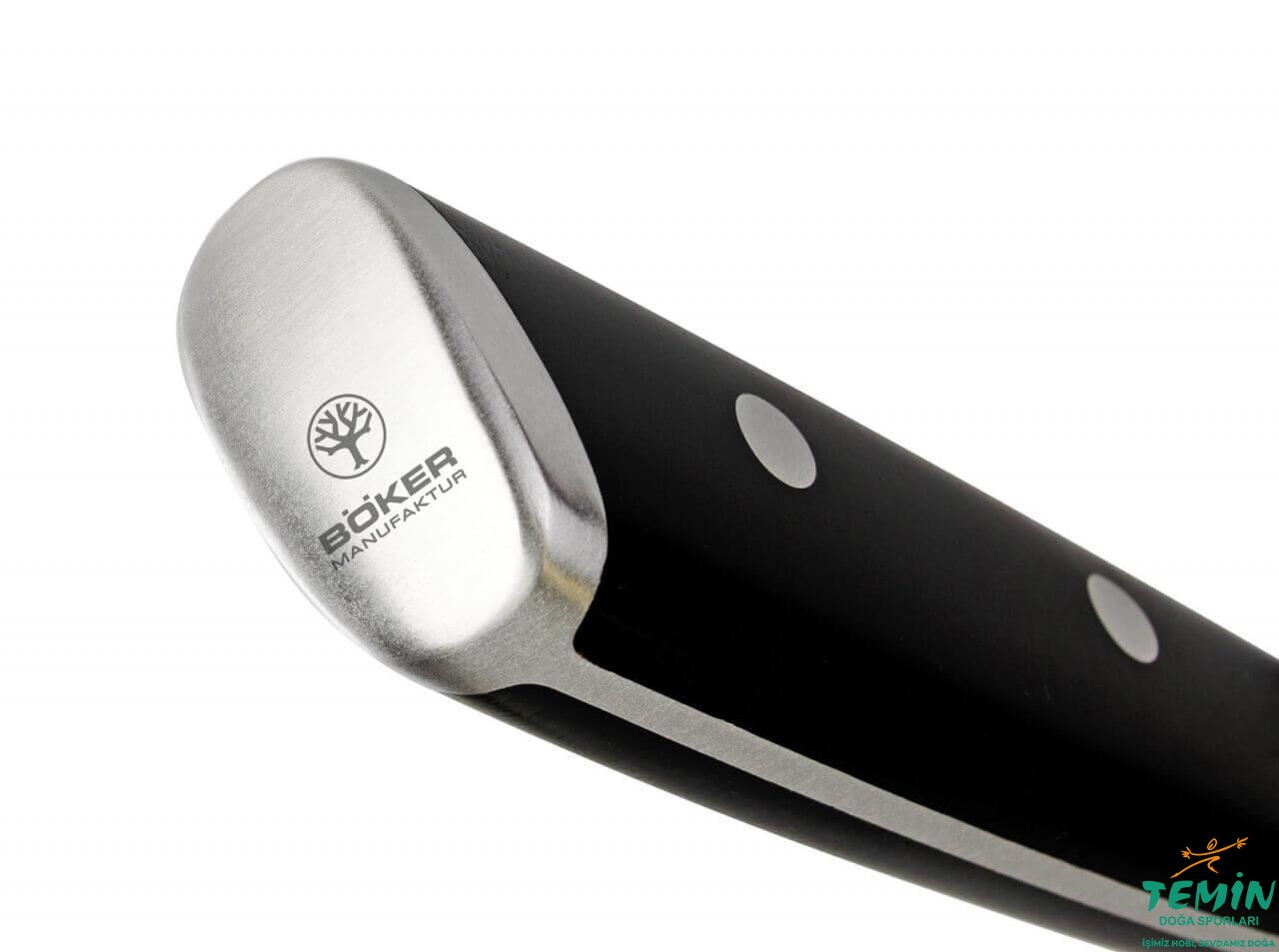 - Kalın ve bütünleşik balçaklar arasına oturtulan sap malzemesi (akçaağaç veya siyah ABS), 3 adet paslanmaz çelik perçinle kuyruğa sabitlenmiştir.