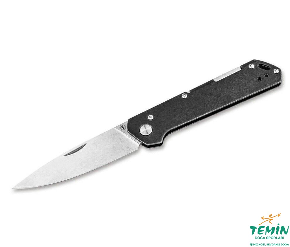 Çakıyı açmak ve kilidini açmak için tırnak çentiği ve arka kilit içeren çalışma konsepti pratiktir; tek parça halinde katlanmış ikonik siyah taş yıkama paslanmaz çelik sap. Bir kordon deliği, dönüştürülebilir uç yukarı klips ve bol miktarda tahrik ile birlikte verilir.