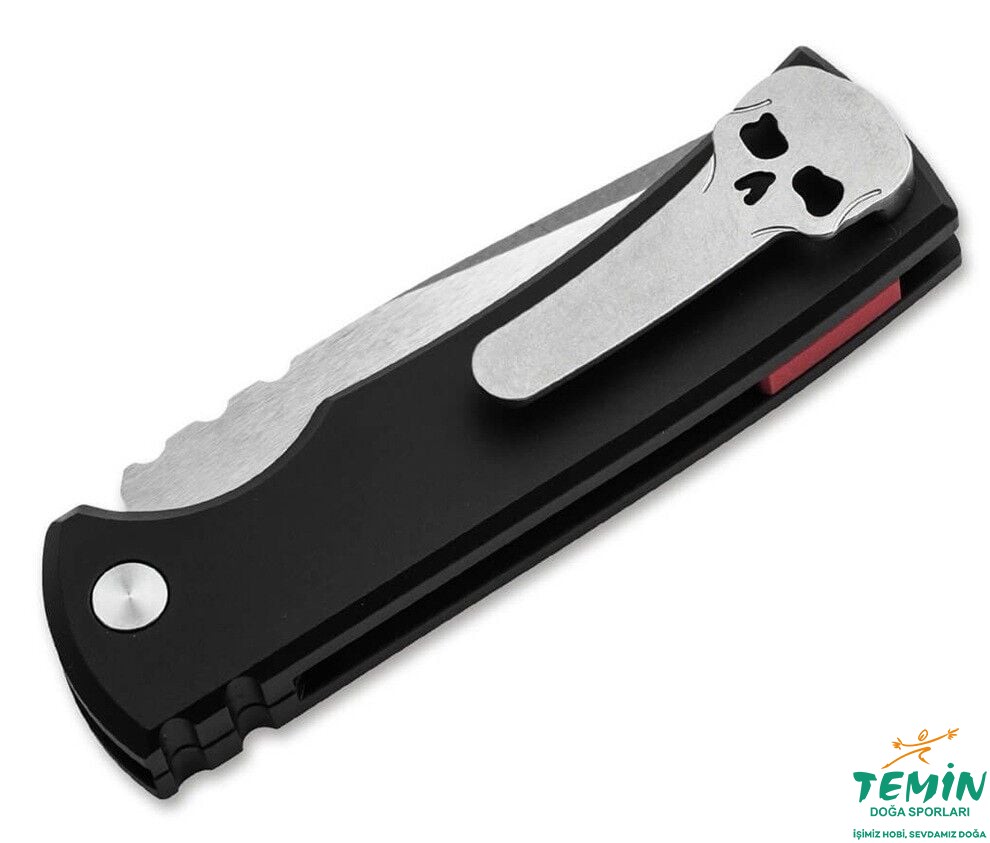 Meksikalı tanrıça Santa Muerte'yi tasvir eden titanyumdan yapılmış Chaves kafatası klipsi ve gizli kordon deliğine sahip biber kırmızısı arka ara parçası gibi kendine özgü özellikler, çarpıcı vurgular yaratarak bu bıçağı gerçek bir stil ikonu haline getirir.