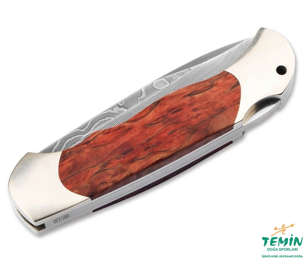 Her bıçak, Solingen'deki Böker Fabrikasında elle işlenir ve dekoratif saklama için yüksek kaliteli bir çerçeve kılıfı ile birlikte gelir. Bu sınırlı üretim, sadece tasarımı değil, aynı zamanda kaliteyi ve işlevselliği de takdir eden bıçak koleksiyoncuları ve doğa tutkunları için bir şaheserdir.