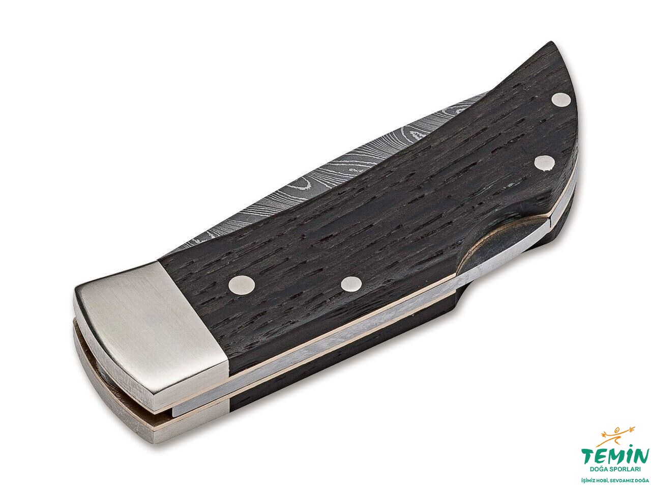 Pocket serisinin bu seçkin versiyonunda, Chad Nichols üretimi paslanmaz Damascus [Kısa namluya yakışan bumerang (boomerang) desendedir. Tam düz ağız açımı (full flat grind) uygulanan, yuvarlak uç (drop point) yapısındaki namlu, desenleri gururla sergilemektedir.] namlu ve otantik bataklık meşesi sap malzemesi kullanılmıştır. Gümüş nikel (Alman gümüşü) balçaklar, koyu renk sap ve namlu ile kontrast oluşturmaktadır. Solingen’de üretilen bu asil görünümlü ve işlevsel çakıda, arkadan kilit (lockback) sistemi bulunmaktadır.