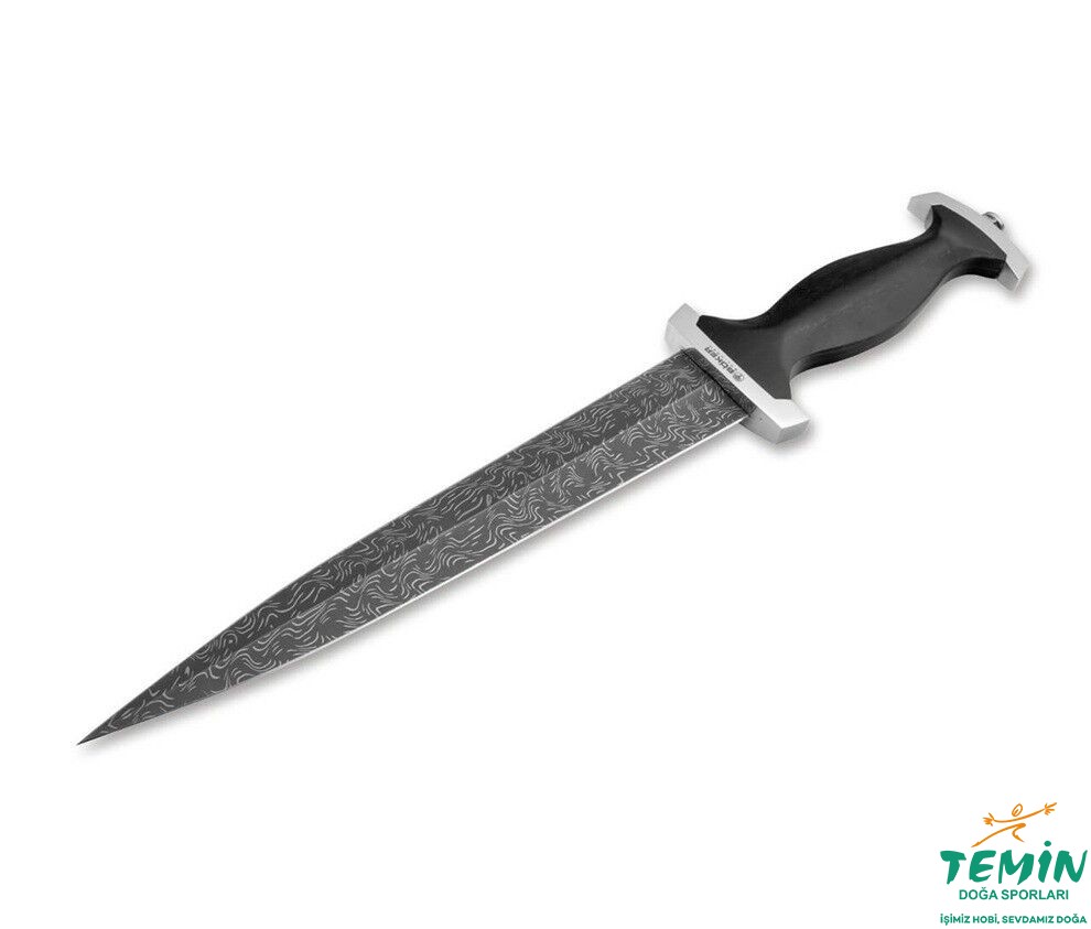 Her iki tarafı da keskinleştirilmiş ve sivriltilmiş hançer bıçağı, tarihi modellerde zaten elmas şeklinde bir kesite sahipti, çünkü bu yapının son derece sağlam ve etkili olduğu kanıtlanmıştı. İsviçre Hançeri'nin karakteristik özelliği kabzanın ve çapraz korumanın tasarımıdır. Alışılmadık, kavisli tasarımın izleri 13. yüzyılın başlarına kadar sürülebilir ve el yapımı baskımızın özgün tasarımında da bulunabilir. Elle seçilmiş sertifikalı ithal Abanozdan yapılmış pırıltılı koyu renkli sap, cilalı kabza ve çapraz koruma ile çevrelenmiştir ve bıçakla mükemmel bir bütün oluşturur.