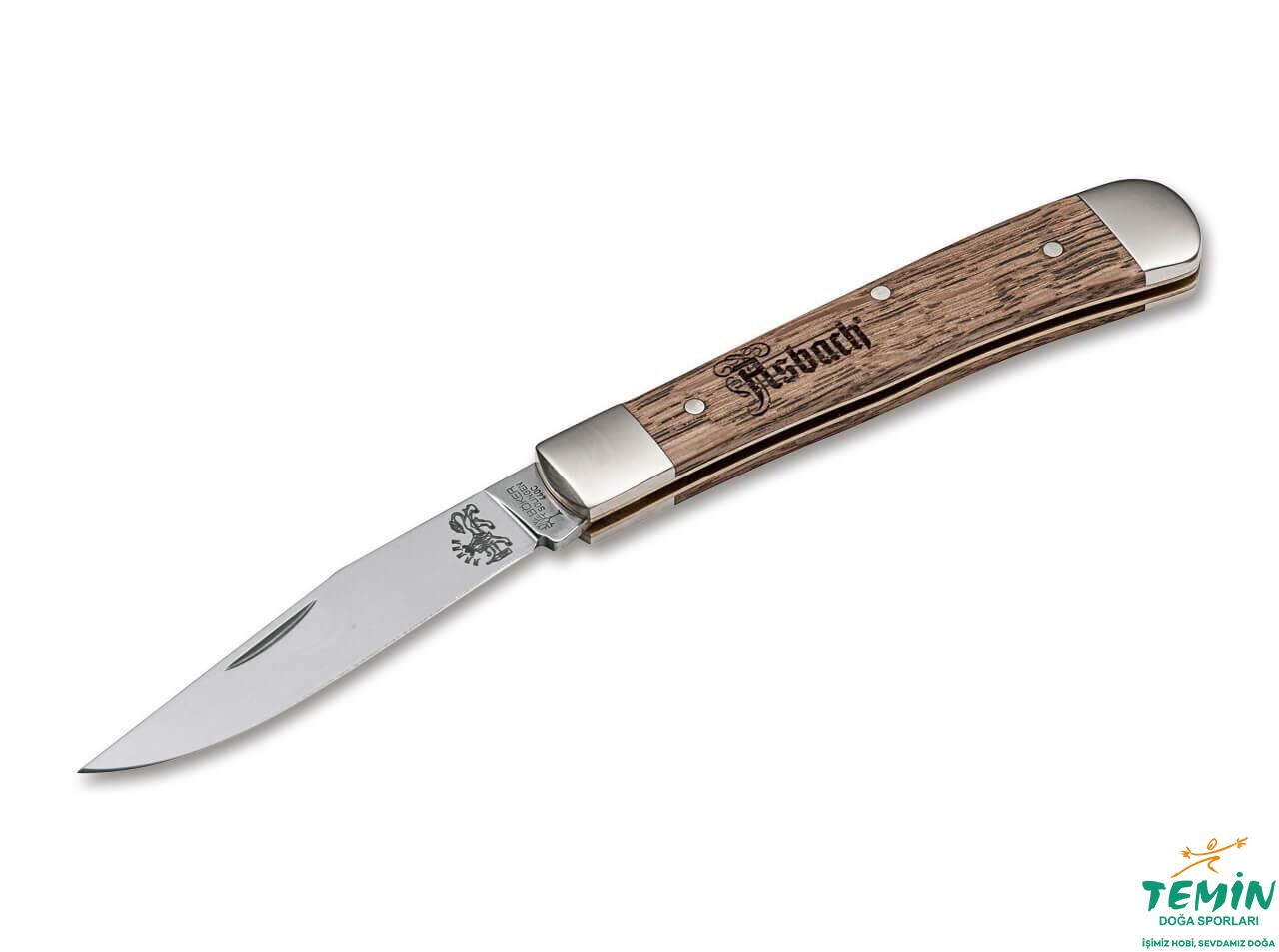Solingen’de el işçiliği ile sadece 999 adet üretilen ve seri numarası taşıyan Böker Trapper Asbach Uralt, sertifikası ve yüksek kalitedeki fermuarlı keçe kılıfıyla sunulmaktadır.