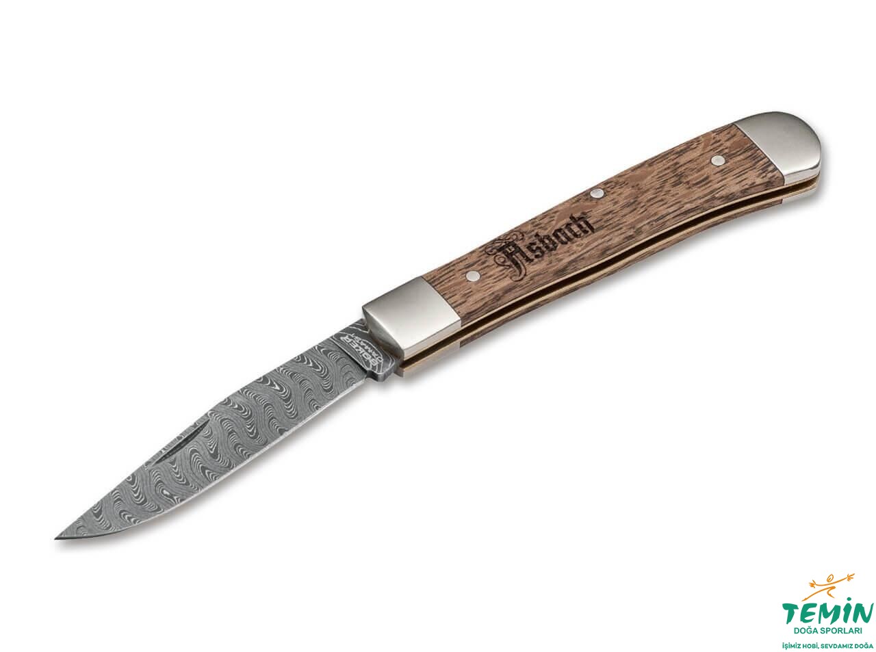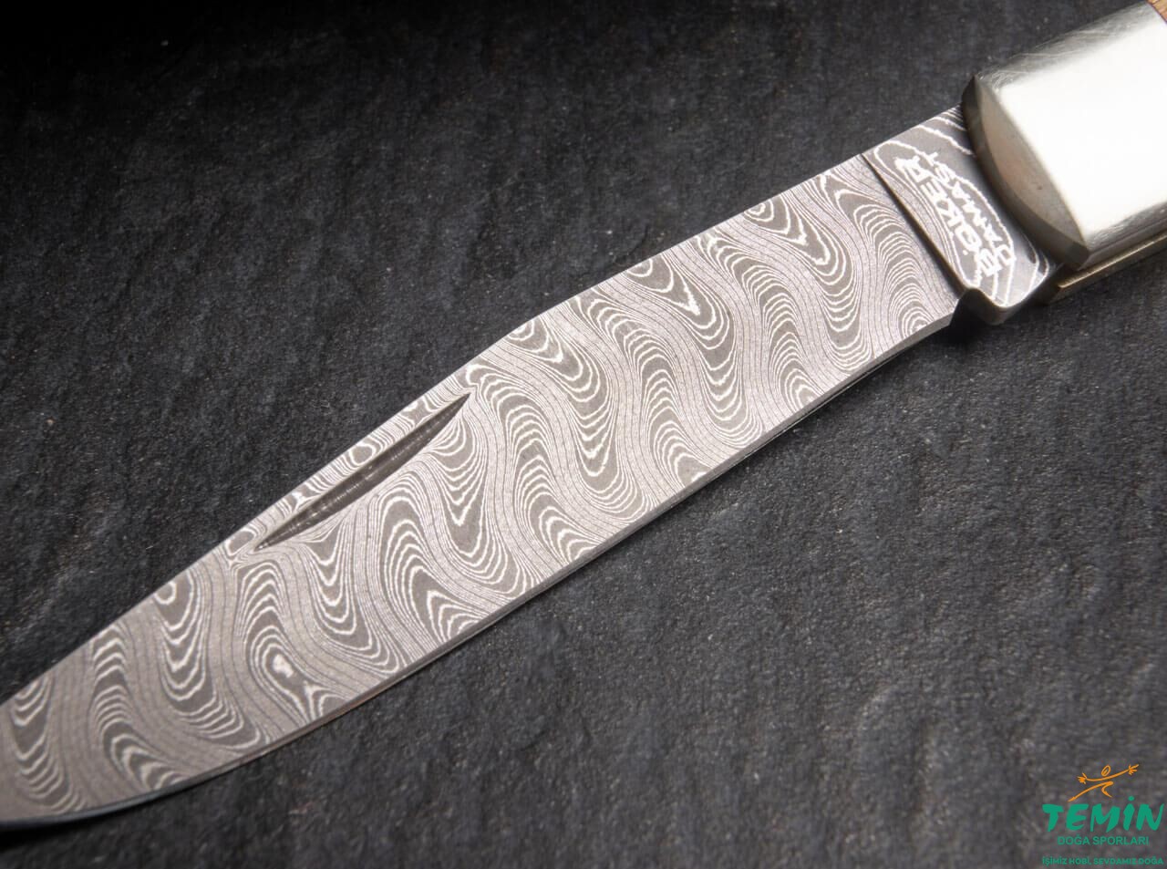 Solingen’de el işçiliği ile sadece 299 adet üretilen ve seri numarası taşıyan Böker Trapper Asbach Uralt Damascus, sertifikası ve yüksek kalitedeki fermuarlı keçe kılıfıyla sunulmaktadır.