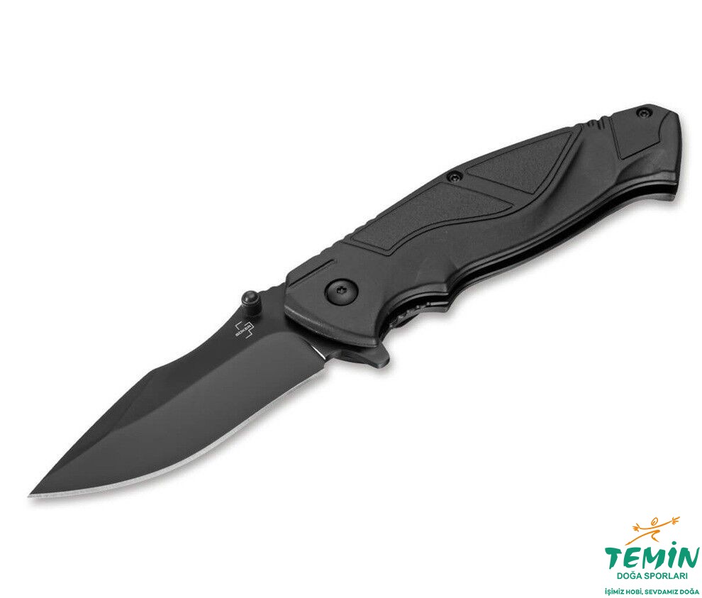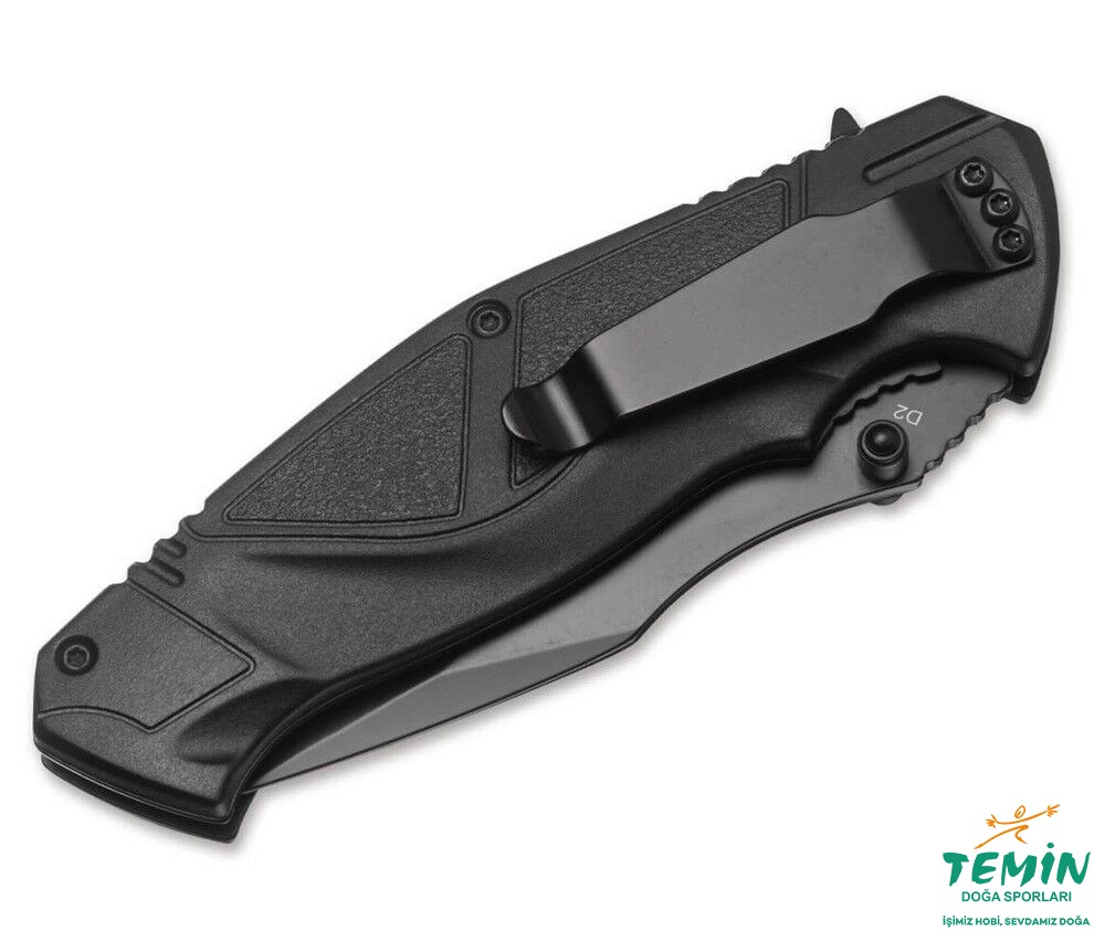 Boker Plus All Black Pro, sağlam yapılı, yüksek kaliteli bir taktik bıçaktır. Hafif bir alt kabza çıkıntısına sahip, konturlu, elyaf takviyeli plastik kabza sap, eldiven giyilip giyilmediğine bakılmaksızın ele mükemmel bir şekilde oturur. Elyaf takviyeli plastik, yüksek stabilite ve dayanıklılık sağlarken, kabzanın konturları mükemmel bir ergonomi sunar. Bu da, aşırı koşullarda bile güvenli ve rahat bir tutuşu garanti eder.