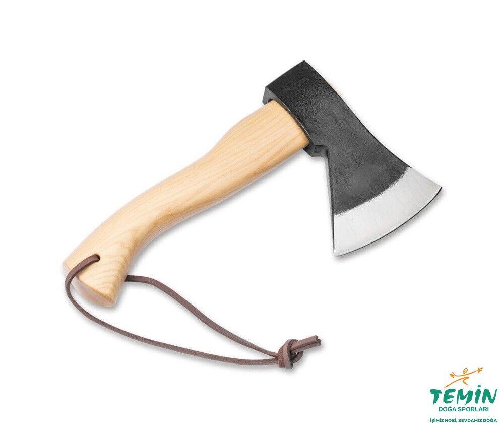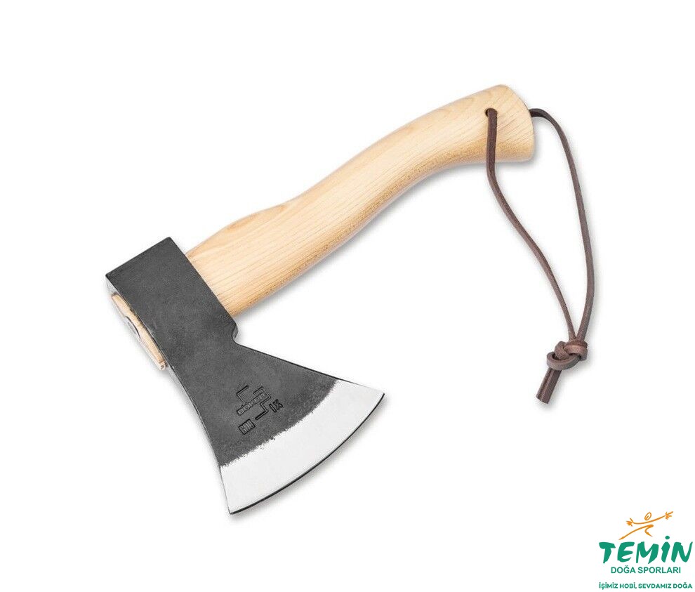 Odun hazırlığı ve yontma için mini balta: 1055 çelik Rhineland baş, parlak ağız taşlaması. 150 mm kesici, dişbudak sap, 800 g.