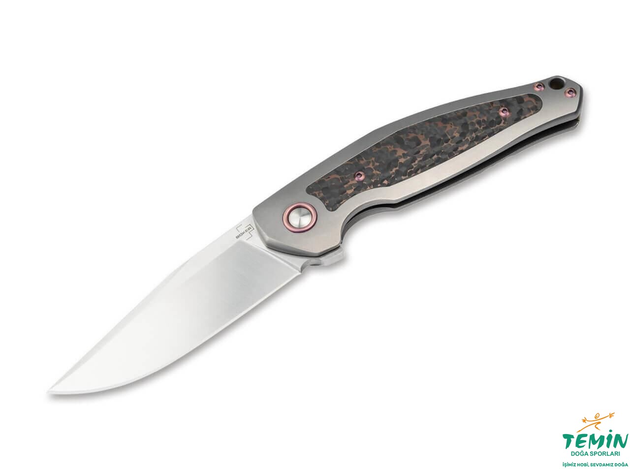Cıvatalar, ara parça ve pivot bağlantı elemanının pulu; titanyumdan imal edilmiş ve bronz renkte anodize edilmiştir. Böylelikle çakıdaki renk uyumu, görsel bir şölene dönüşmüştür.