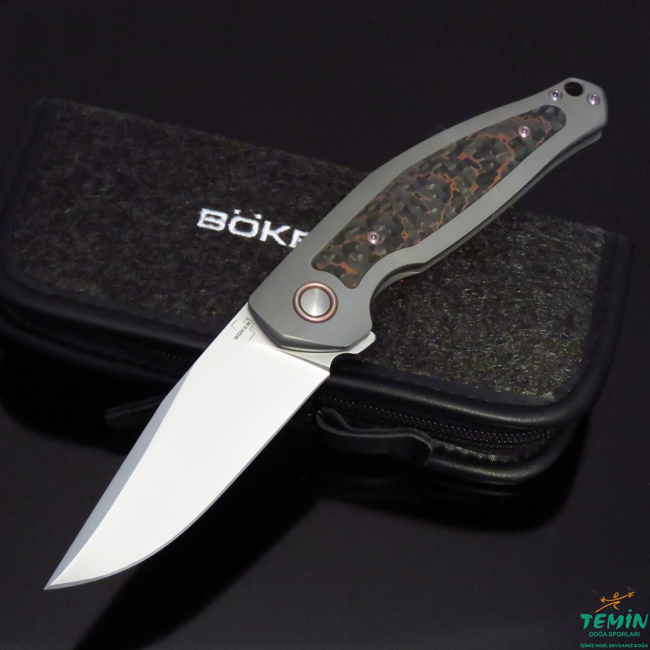 Üzerinde kordon deliği (lanyard hole) de bulunan ve boncuk püskürtmesiyle kumlanmış (bead blasted) tek parça titanyumdan imal edilen cep klipsi sayesinde kolaylıkla taşınabilen bu asil ürün, dünya çapında sadece 500 adet üretilmiştir. Böker Plus Collection 2022, orijinallik sertifikasıyla birlikte, yüksek kalitedeki, fermuarlı keçe kılıfı içinde sunulmaktadır.