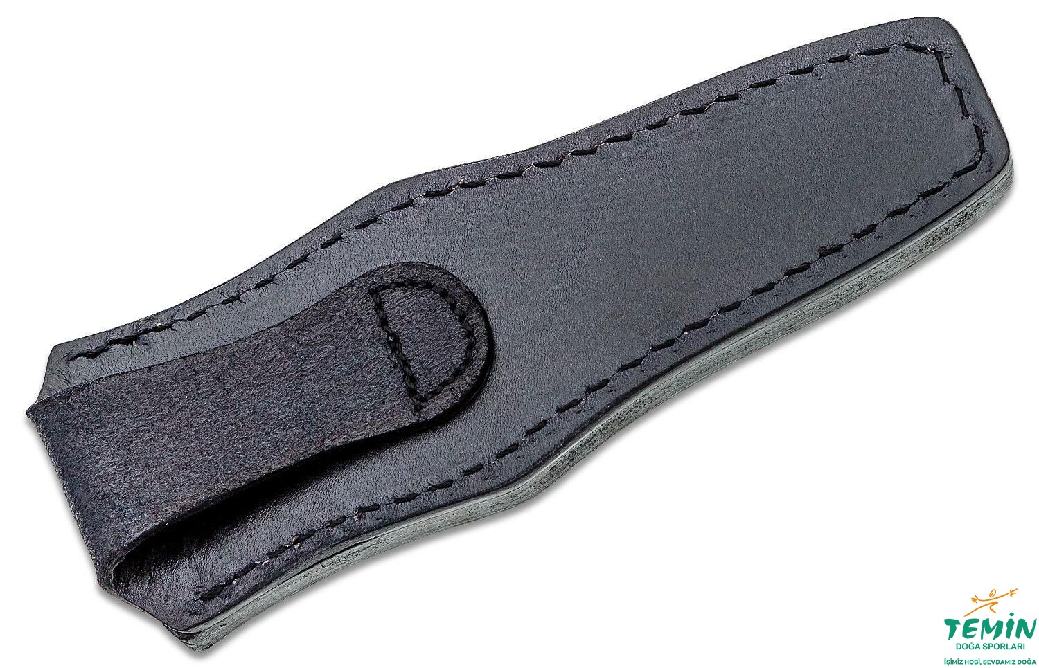 İnce, zarif ve çok yönlü kullanıma imkân tanıyan Böker Plus Cub Pro, birinci sınıf deri kılıfıyla (siyah) sunuluyor.