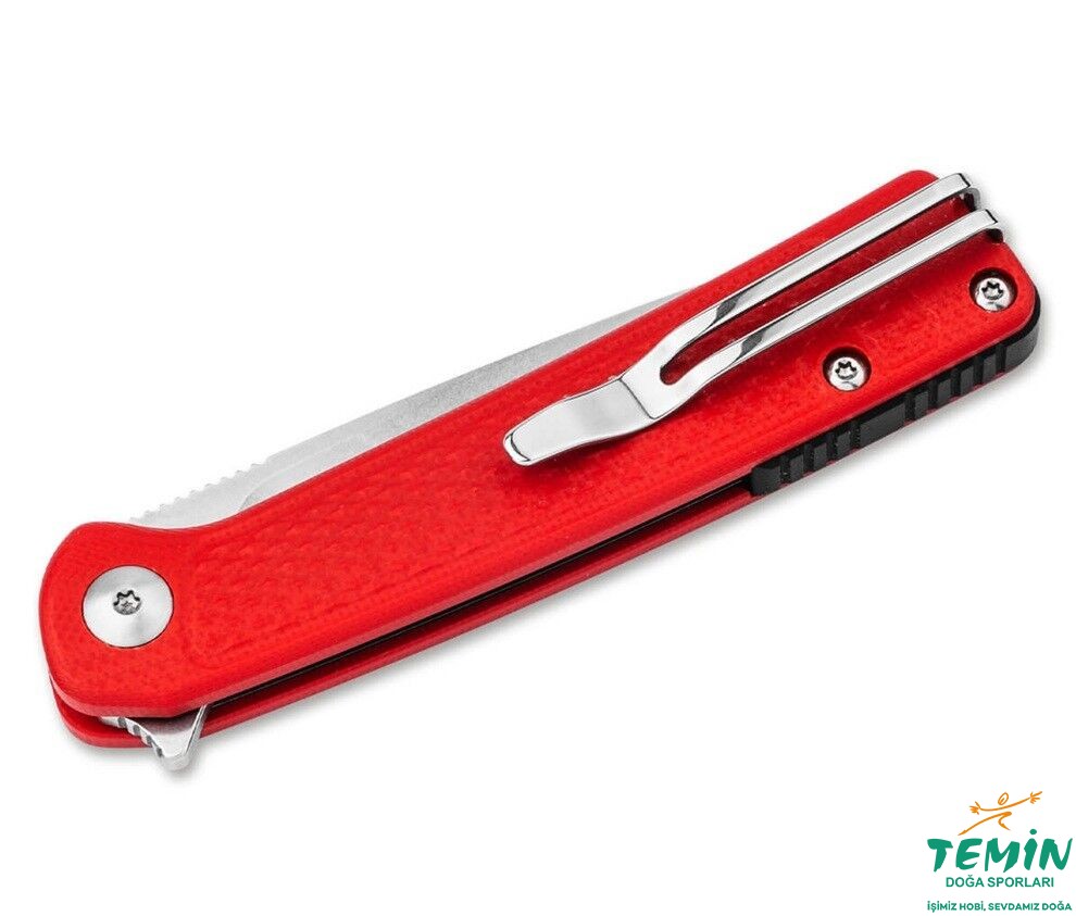 Günlük EDC için çevik “Fire Ant”: flipper ile hızlı açılış, 1.4116 çelik 74 mm drop point namlu. 53 g hafif; dokulu kırmızı polipropilen sap, cımbız ve ters çevrilebilir klipsle taşımaya hazır.