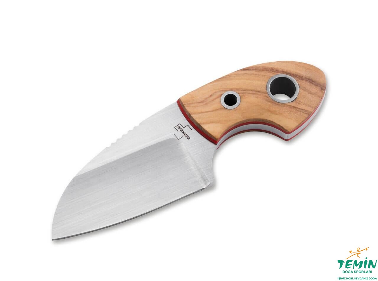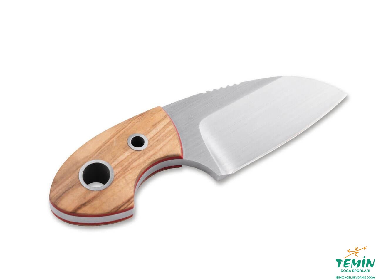 Zeytin ağacı sap malzemesinin yerine takılmasında faydalanılan çelik boru pimler, kordon deliği (lanyard hole) olarak kullanılabilmektedir. Kırmızı astarlar, estetik ve işlevseldir. Bıçak, çizgileri sayesinde, küçük boyutuna karşın sıkı bir tutuş olanağı tanımaktadır.