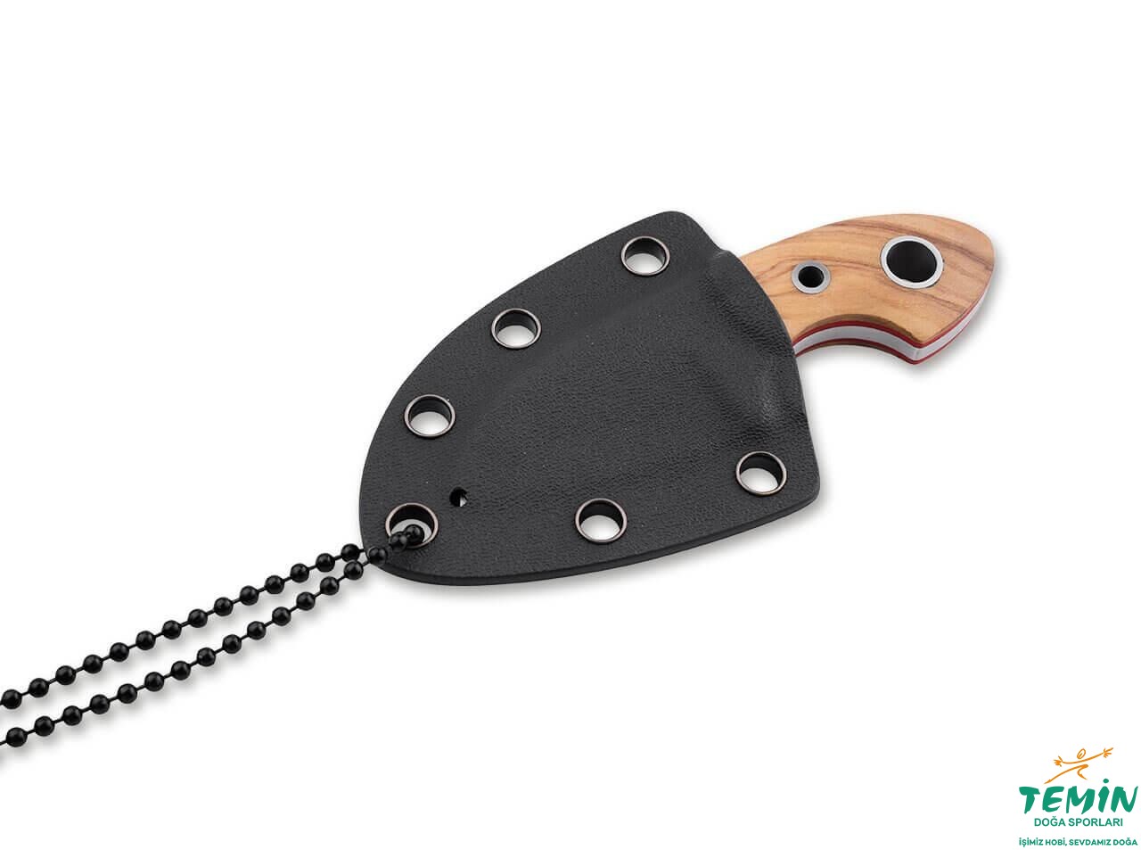 Kullanışlı bir yol arkadaşı olan Böker Plus Gnome Olive D2 (02BO322), kydex kılıfıyla sunulmaktadır. Birlikte verilen top zincir, Gnome’un boyun bıçağı olarak kullanılma iddiasını vurgulamaktadır.