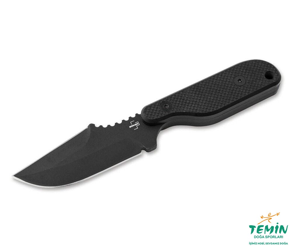 Çok yönlü, şaşırtıcı, esnek - Filipinli dövüş sanatları ve Escrima uzmanı Frank Delo Jr. sadece kendini savunma konusunda işini bilmekle kalmıyor, aynı zamanda taktik bir bıçakta neyin önemli olduğunu da çok iyi biliyor. Boker Plus Kagat, bıçak tasarımcısının dinamiklerini benimsiyor ve zorlu EDC operasyonlarına benzeri görülmemiş bir hafiflik kazandıran sağlam full tang yapıda sabit bıçaklı bir bıçak olarak kendini gösteriyor. 1095 karbon çelik bıçak, taktiksel konsepti tutarlı bir şekilde vurgulayan korozyona dayanıklı siyah toz boya ile kaplanmıştır. Etkileyici bıçak kalınlığı, Harpoon bıçağın arkasındaki devasa jimpingler ve dışbükey G10 sap kabza arasındaki etkileşim, tam kontrol ile güçlü ve hassas kesimler sağlar. Bir kordon deliği, özel yapım Kydex kılıf ve kemer bağlantısı ile birlikte gelir. Buna sahip olmak için Ka-gat!