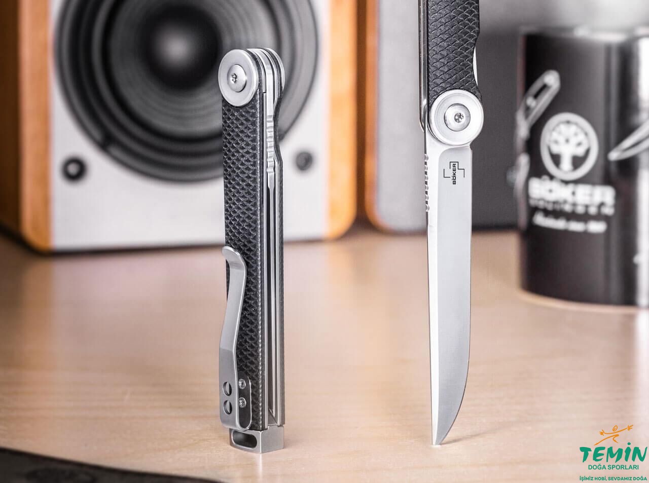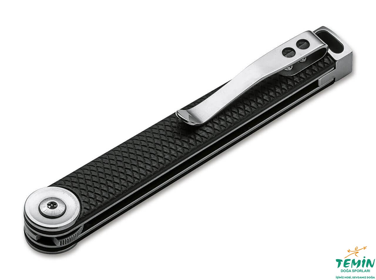 Cep klipsi (çıkarılabilir) sayesinde kolaylıkla taşınabilen Böker Plus Kaizen Black, zarar görmeden saklanabilmesi için, yüksek kalitede naylondan yapılan fermuarlı kesesiyle sunulmaktadır.