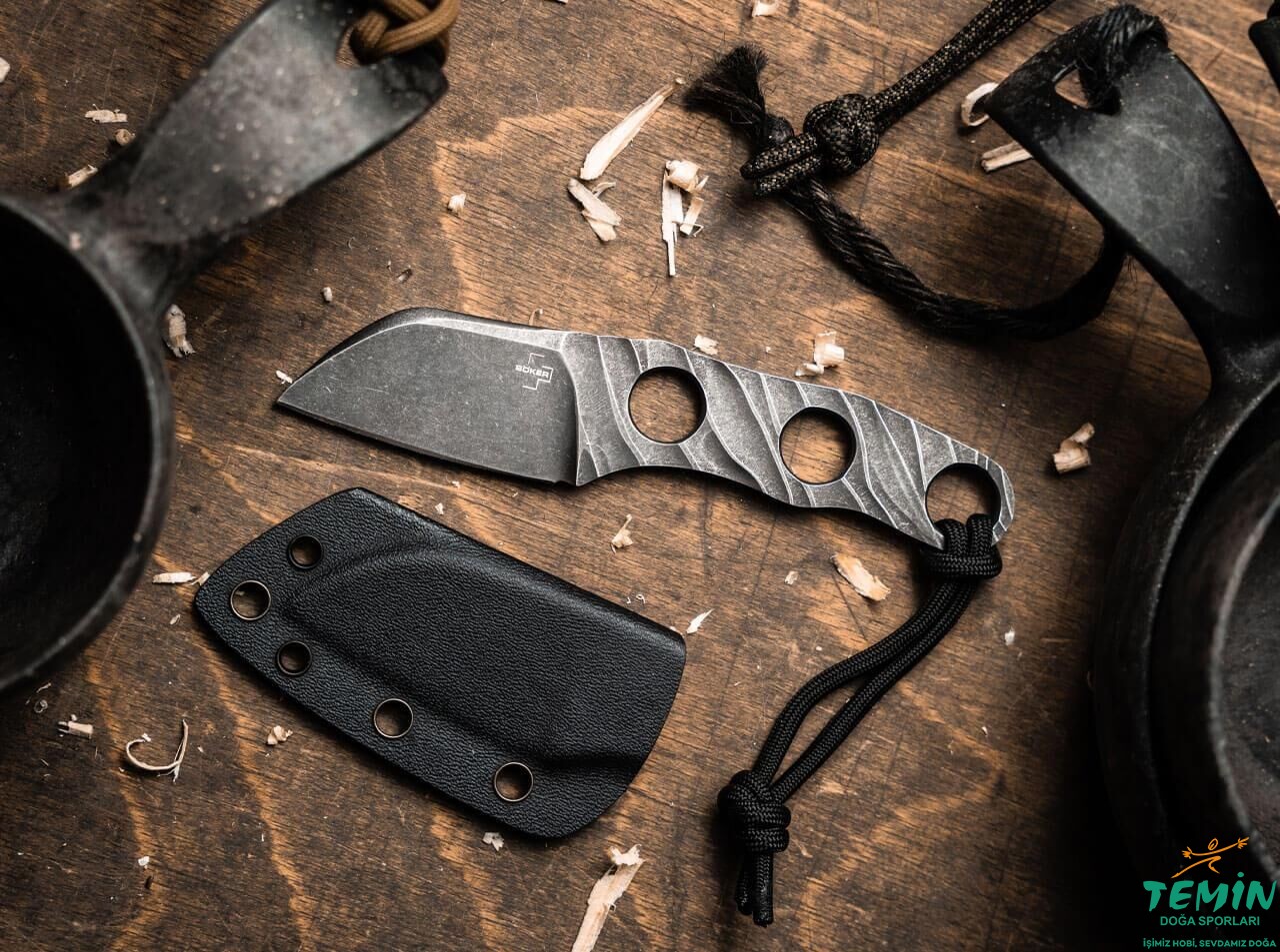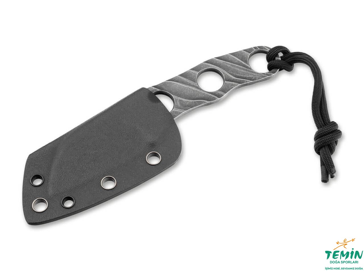 Hafifliği sayesinde, gündelik kullanım için de uygun bir yedek bıçak olan Böker Plus Kazhan; kydex kılıfı, top zinciri ve sapına takılı kordonu ile sunulmaktadır.