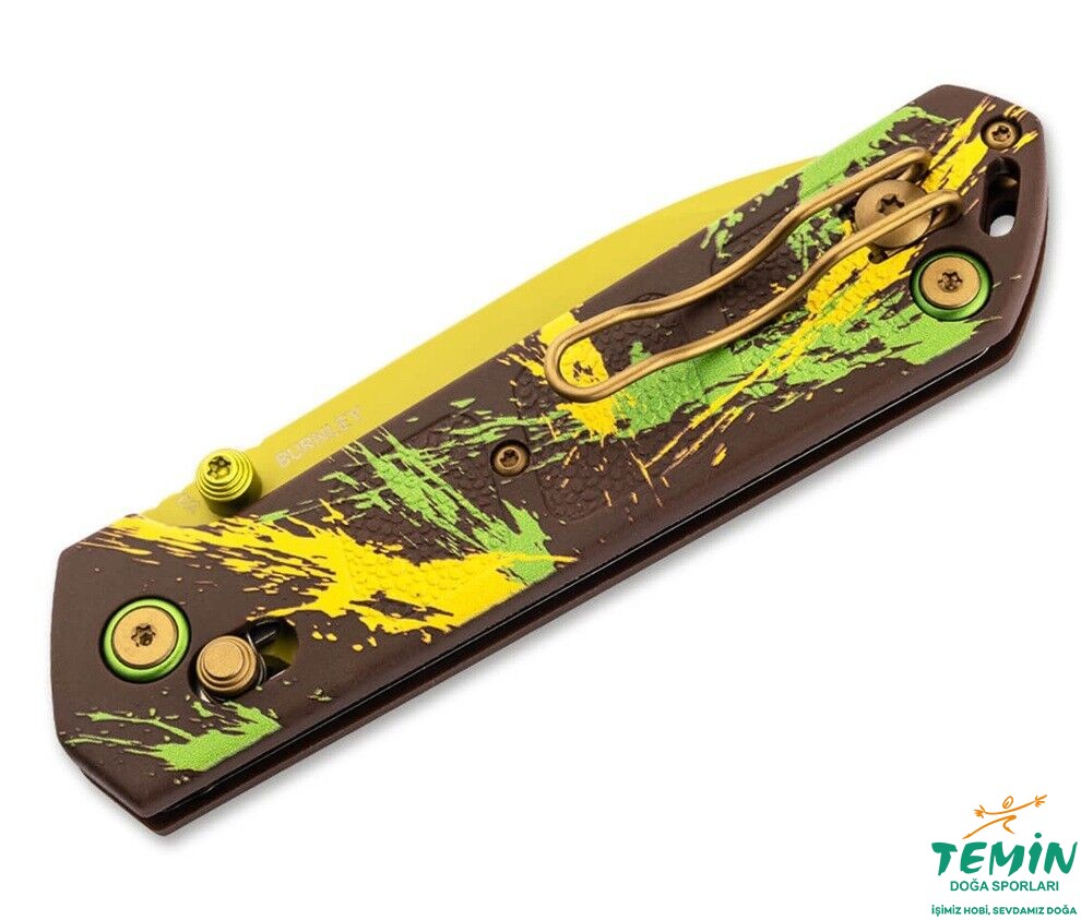 “Dubai Chocolate” renk konseptiyle farklı bir EDC: thumb stud hızlı açılış, crossbar kilit ile güvenli kullanım. D2 82 mm bıçak, 87 g; tel klips ve kordon deliği.