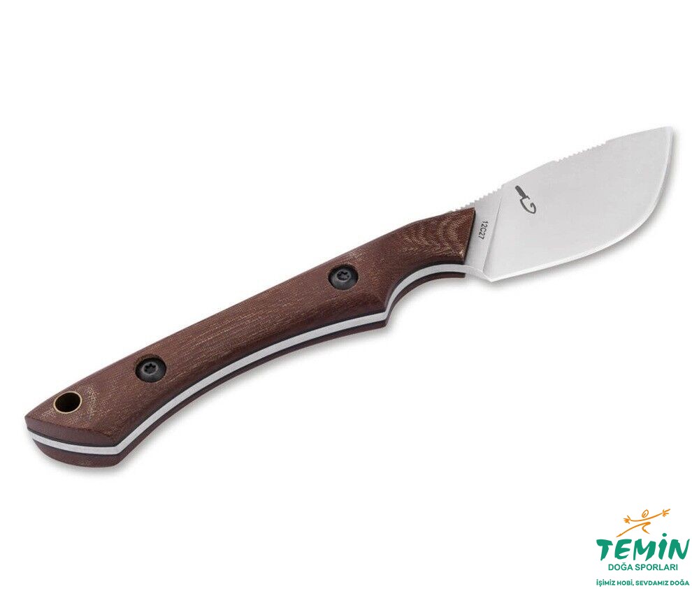 Sabit bıçak sessizliği solur ve anı yaratır. Maceracı George Washington Sears'ın ikonik Nessmuk av bıçaklarından esinlenen kompakt Pocket MUK, zorlu dış mekan kullanımında kendini kanıtlamış olan İsveç 14C28N çeliğinden yapılmış karakteristik bombeli Skinner ağzıyla birlikte gelir. Bıçak şekli, full tang ve kahverengi Micarta'dan yapılmış ergonomik sap kabzası, her zaman hassas kesimler, maksimum denge ve tam kontrol sağlar. Av hayvanlarını kesmek, açık havada yemek hazırlamak ve odun yarmak veya oymak gibi avcılık görevleri, kamp bıçağının geniş yelpazesini kapsar. Bıçağın sade taş yıkama yüzeyi sağlam karakterini vurgularken, bıçağın arkasındaki jimpingler de iş güvenliğini artırır.
