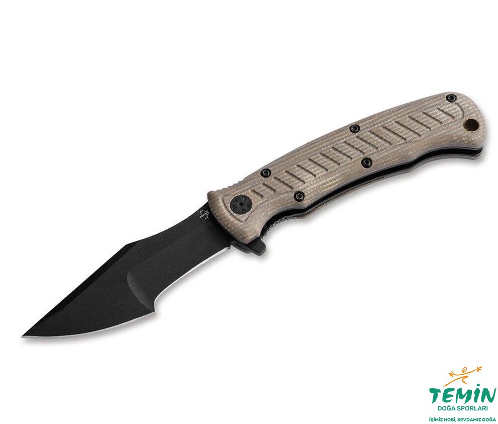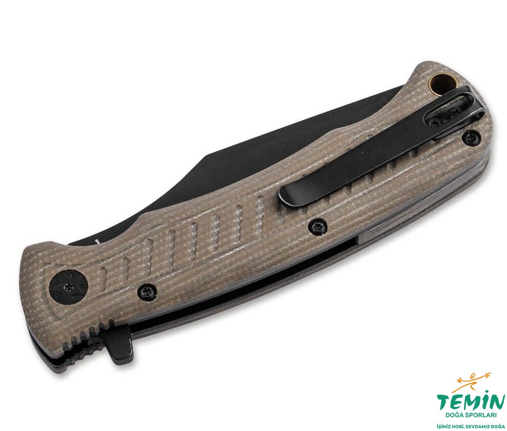Yapın, izleyin, çevirin! Cebinize ve doğaya, Boker Plus Micro Tracker Folder şimdi macera için daha da fazla alan sunuyor. Kullanışlı boyutları sayesinde bu çakı, outdoor ve bushcrafting için ideal bir başlangıç çakısıdır. ABD'li tasarımcı Dave Wenger, katlanabilir versiyonda da farklı taşlamalarla geniş bir kullanım yelpazesi sunan 154CM'den yapılmış iki parçalı Harpoon bıçağa güveniyor. Ön kısım güçlü noktası ile her türlü işleriniz için idealken, arka kısım kesme ve oyma işlemlerinde gücünü gösteriyor. Micro Tracker Folder, öne çıkan flipper kullanılarak açılırken, linerlock bıçağı güvenle kilitler. Kahverengi Micarta'dan yapılmış ergonomik sap kabzası ve boyunluk takmak için sapın ucundaki içi boş pirinç saplama, popüler Boker Plus Tracker serisindeki sabit modelleri anımsatır. Derin taşıma klipsi (tip-up/r), yüksek kaliteli naylon kılıf ve kararlı bir bıçak bulundurma zihniyetiyle birlikte verilir.