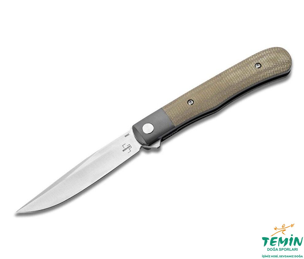 Bir klasiğin mirası, zamansız geleneksel, geleneksel olarakta zamansız ve Böker Plus tarafından çağdaş bir şekilde yorumlandı. Orijinal Trapper, adını Kuzey Amerika'da avlanarak ormanlarda dolaşan tuzakçılara borçludur. Bıçağın tasarımı 19. yüzyıla kadar uzanır ve ince hatları ve sap üzerindeki karakteristik üst ve alt destekleri ile karakterize edilir. Boker Plus Modern Trapper Uno'da arka destek yoktur ve dokunması hoş olan gri Micarta'dan yapılmış sap kabzesi ile titanyum kaplamalı bir ön destek kullanır. Bu centilmen çakısı, Nitro-V'den yapılmış bilyalı rulmanlı drop-point ağzını açmak ve kilitlemek için tırnak çentiği ve slipjoint yerine bir flipper ve liner kilidi kullanır. Düz pivot vidası, çakının fırçalanmış saten iki tonlu kaplaması ve zarif uçtan yukarı klips (r) çakının düzenli görünümünü şık bir şekilde tamamlar. Klasik bu kadar modern olabilir!