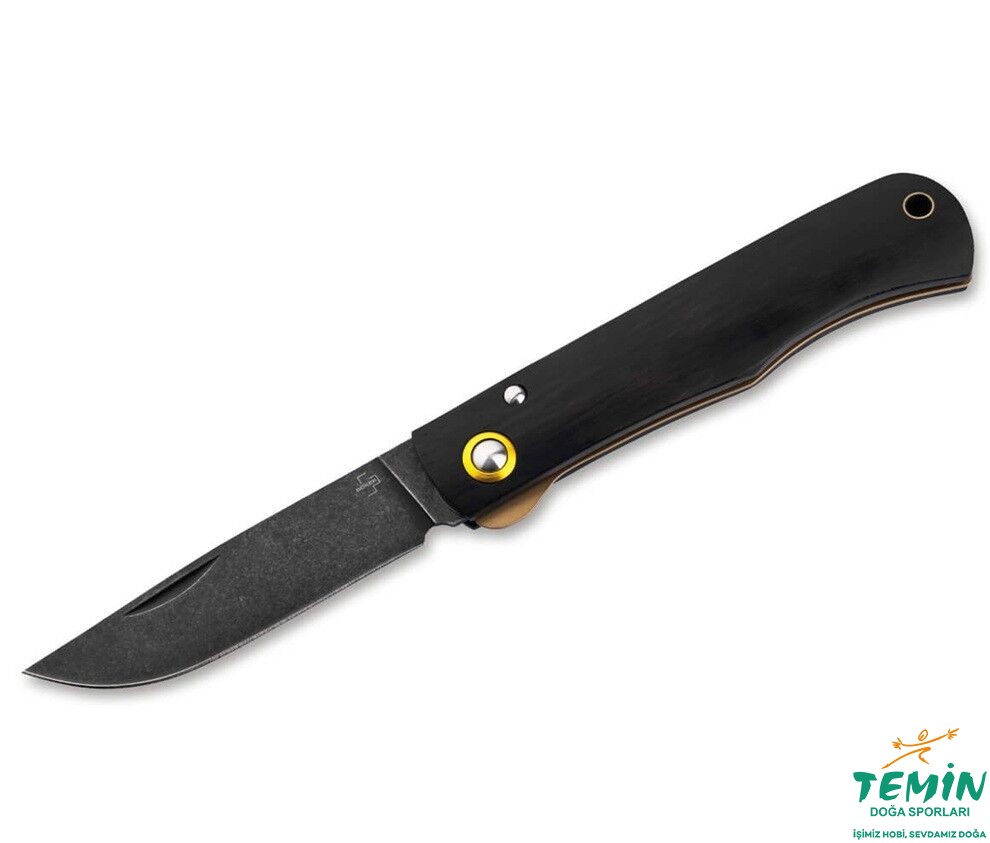 Tangy siyah stonewash kaplamalı 420 clip-point çakı, klasik tırnak çentiği ile açılır ve güvenilir liner-lock ile kilitlenir. Rustik abanoz sap ve liner, bıçak pivot vidasının dış halkası ve kordon takmak için kordon deliği gibi pirinç renkli unsurlar, katlanır bıçağın düzenli görünümünü vurgular ve geleneksel bir dokunuş katar. Mütevazı bir sağlamlık ve ilk cep bıçağı olarak mükemmel bir hediye fikri.