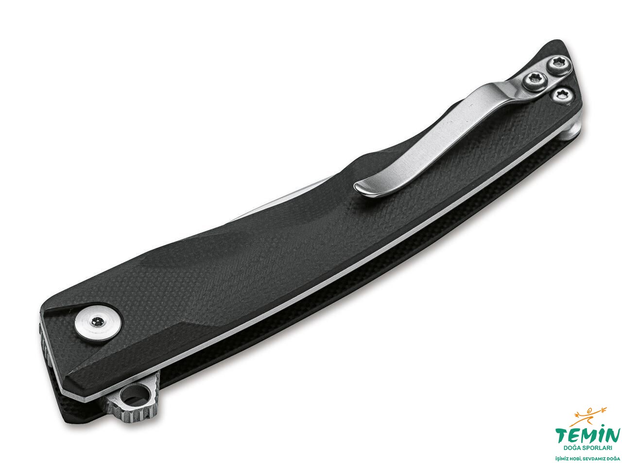 G10 sap malzemesi ve onun üzerinde 3 boyutlu çalışılmasıyla, kompakt yapısına karşın, iyi kavranan çakının kolay taşınabilmesi için cep klipsi bulunmaktadır. Cep klipsi çıkarılabilmektedir.