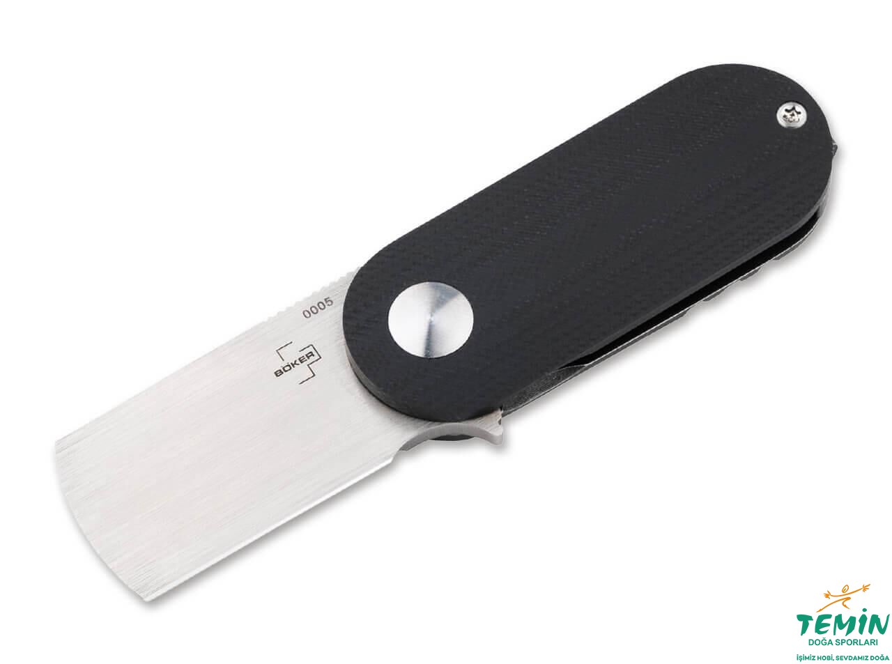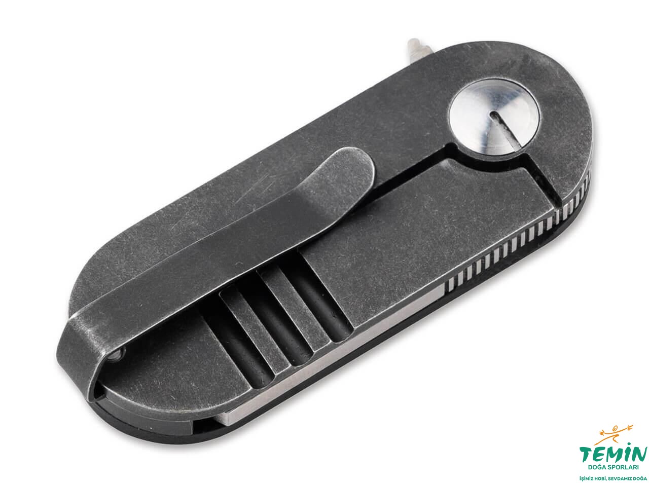 Bilyeli rulmanlar üzerinde pürüzsüz hareket eden namlu, kendi konturlarından pek az ayrılan ama yine de üzerindeki çentikler sayesinde işlevsel olan minimalist flipper ile, tek elle ve kolaylıkla açılabilmektedir. D2 çelikten imal edilen ve bir satırı andıran minik (39 mm uzunluğunda) namlu, keski açım (chisel grind) -tek taraftan yapılan ağız açımı) uygulanmasıyla keskin ve dayanıklıdır. Keskin kenarın altındaki çentik (choil) kesmeye saplayarak başlamaya hizmet etmektedir ve ince işlerde işaret parmağının sığabileceği niteliktedir. Kavramaya yardımcı çentikler (jimping) hâkimiyeti artırmaktadır.