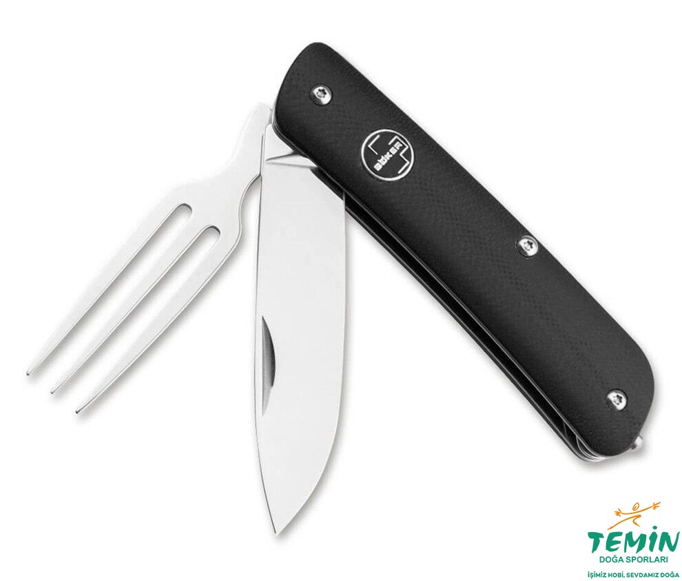 Popüler Böker Plus Tech Tool serisi yıllardır kült statüsüne sahip ve sürekli kendini yeniden keşfediyor. Çok işlevli çakının tanınırlık değeri bundan etkilenmez, aslında bu tam olarak bu DNA'ya karşılık gelir. Böker Plus Tech Tool Fork, Sandvik 12C27'den yapılmış ana ağzı olan bir çakıdır, klasik olarak tırnak çentiği ile açılır ve kilitlenmez. Bu modelin kalbi, Tech Tool'u kamp ve piknik gezileri için ideal bir arkadaş haline getiren katlanabilir çataldır. Tech Tool Çatallı, elma soymaktan konserve kutusundan yemek çıkarmaya kadar, hiçbir zorluk çıkarmadan fark yaratır. Siyah G10'dan yapılmış hoş konturlu sap elde dengelidir ve hızlıca temizlenebilir. Derin taşıma klipsi (r) ile birlikte verilir.