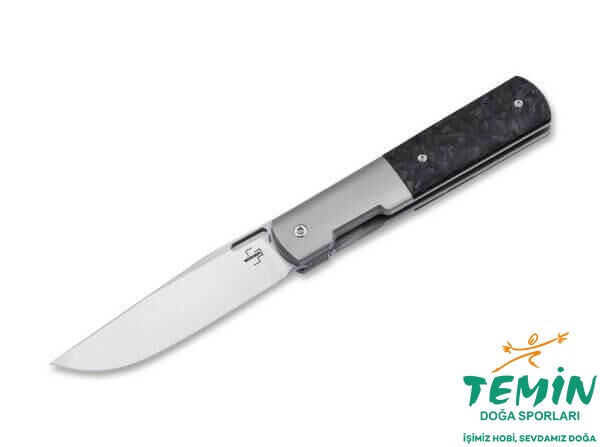 Tek parça titanyumdan yontularak imal edilen geniş cep klipsi sayesinde kolaylıkla taşınabilen Böker Plus Urban Barlow CF (01BO490), yüksek kalitede naylondan yapılan fermuarlı kesesiyle sunulmaktadır.
