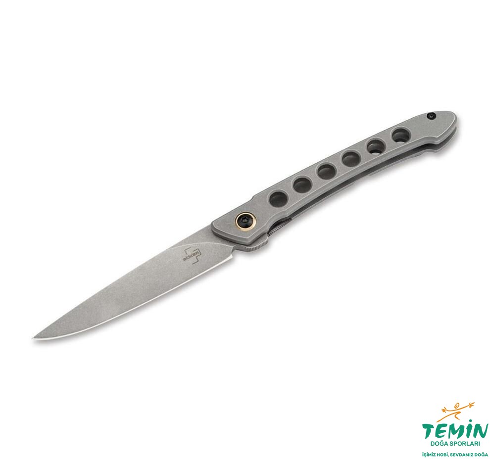 İnce Boker Plus Urban Spillo Framelock, popüler flipper açma özelliğini sağlam bir framelock mekanizması ile birleştirir. Bilyalı 440C Spearpoint ağız, bu centilmen çakısına taktiksel bir dokunuş katan sağlam bir taş yıkama kaplamasıyla tamamlanmıştır. Frezelenmiş sap gövdesi iskeletleştirilmiş paslanmaz çelikten yapılmıştır ve ayrıca taş yıkama kaplamasına sahiptir. İlave astarlar kullanılmaz ve siyah sap cıvatalarıyla bir arada tutulurken, bıçak aks cıvatasının etrafındaki pirinç renkli halka görsel bir vurgu katar. Kordon delikli ve klipslidir (uç yukarı/r).
