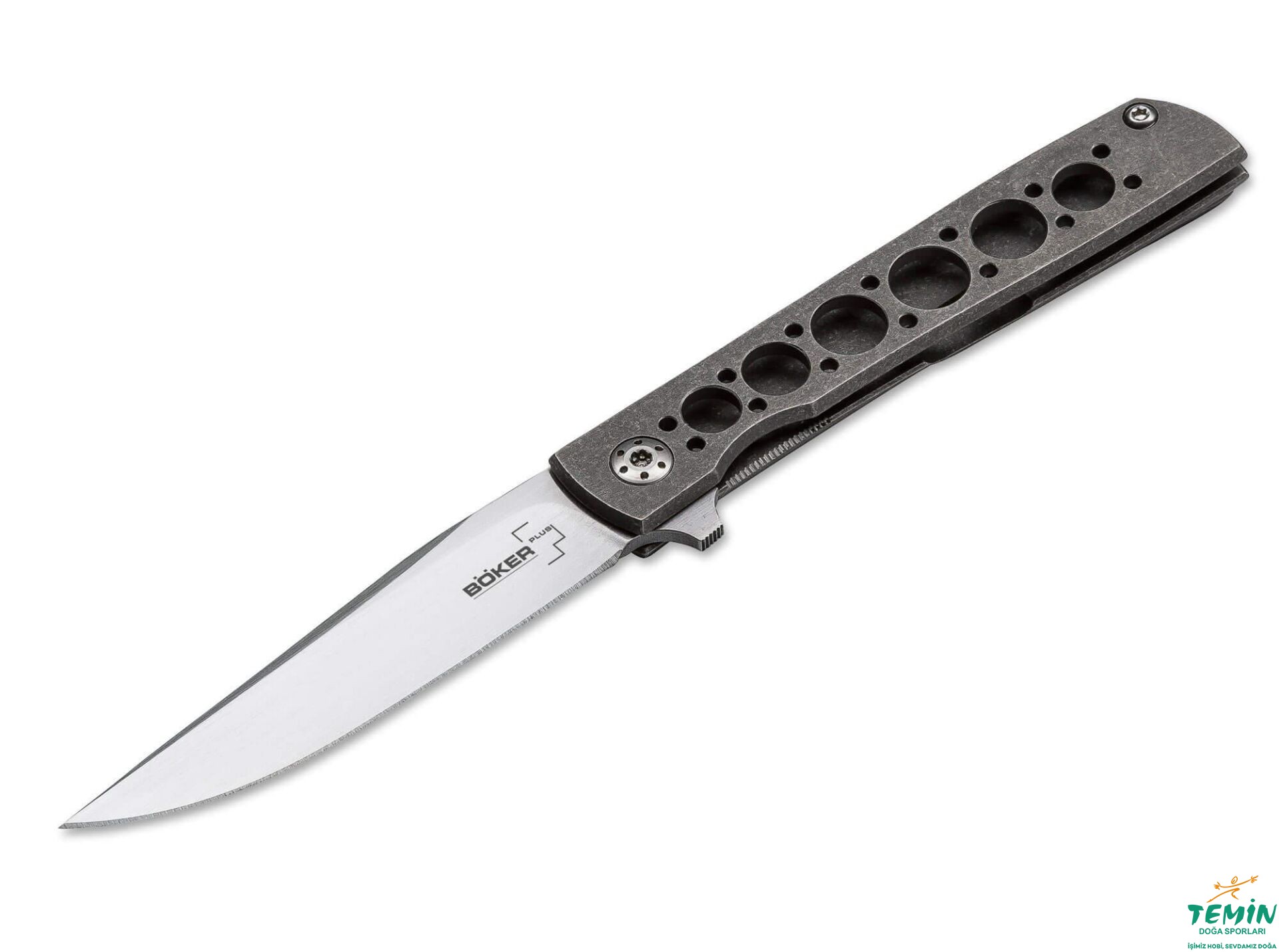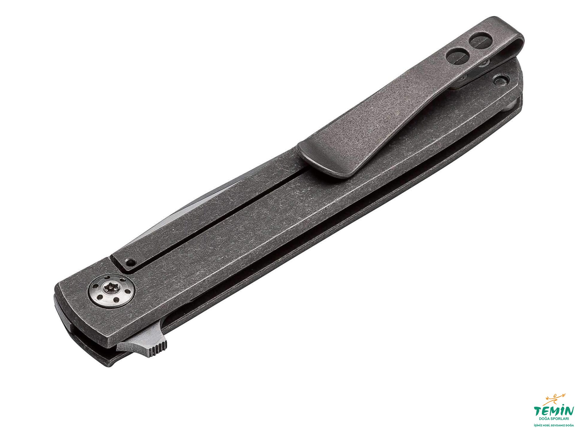 Flipper mekanizması ve bilyeli rulman kullanılması sayesinde kolaylıkla açılan bu gövde kilitli (framelock) model, dikey biçimde taşlanarak saten parlaklığa getirilen VG-10 çelik namluya (7 cm namlu uzunluğu) ve titanyum sapa sahiptir. Zaten hafifliği ve dayanıklılığı ile öne çıkan malzeme olan titanyumun, ince ve geniş delikler açılarak kullanımıyla çakının ağırlığı ciddi şekilde azaltılmış ve 30 grama düşürülmüştür. Böylelikle, oldukça kolay taşınan uzun-ince ve hafif bir çakı elde edilmiştir. Taşıma kolaylığı sağlayan titanyum cep klipsi, çıkarılabilir niteliktedir.