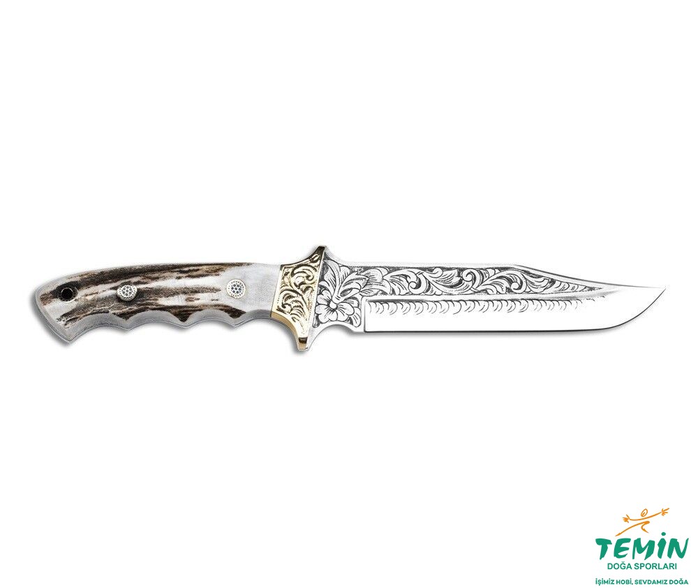 Sapında malzeme olarak Geyik Boynuzu kullanılmaktadır. Her sene üreme döneminden sonra geyiklerin boynuzları düşer, yerine yenisi çıkar. Sınırlı ölçülerde Orman Bakanlığımızdan satın alabildiğimiz, geyik boynuzu sert yapısı ile birlikte dayanıklılığında güçlü olmasından dolayı özellikle bıçakta görselliğe önem veren kullanıcılar tarafından tercih edilmektedir. Doğal yapısı nedeniyle her bıçak üzerinde farklı bir görsellik oluşturmaktadır.