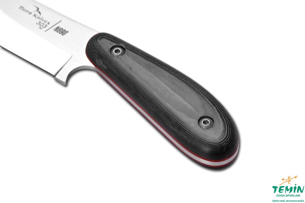Üretime başladığımız 1985’ten beri talebi hiç azalmayan 303 modeli, firmamızın kurucusu Mehmet Emin Bora tarafından tasarlanmış mükemmel bir yüzme bıçağıdır. Dünyada da birçok ülkeye ihraç edilen bu model, BORA isminin markalaşmasında önemli bir rol almıştır. Amerika’da birçok bıçak dergilerinde de hafifliği, taşınabilirliği ve yüzme işlerindeki kesimi ile kusursuzluğundan bahsedilmiştir. Bu modelin çok tutması sonucunda, bir küçüğü olan 308 ve daha da küçüğü olan 319 modelleri üretilmiştir.