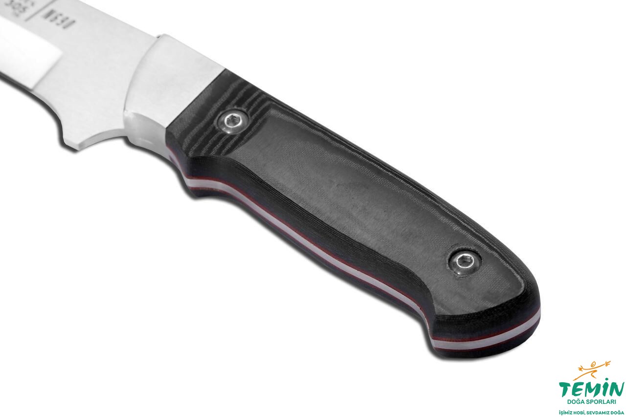 Bıçak üzerinde görünen bağlantı elemanları (cıvatalar) ve balçak, paslanmaz çelikten imal edilmiştir.