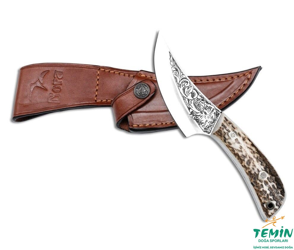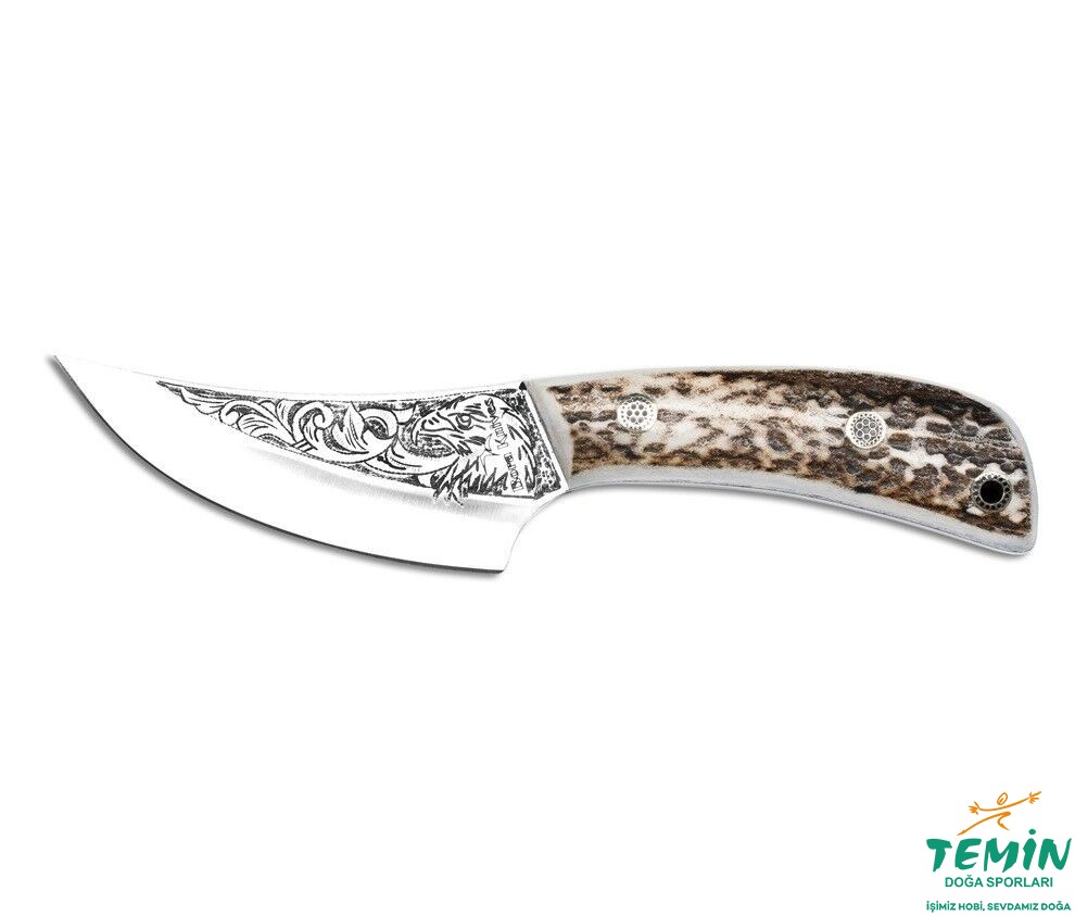 Sapında malzeme olarak Geyik Boynuzu kullanılmaktadır. Her sene üreme döneminden sonra geyiklerin boynuzları düşer, yerine yenisi çıkar. Sınırlı ölçülerde Orman Bakanlığımızdan satın alabildiğimiz, geyik boynuzu sert yapısı ile birlikte dayanıklılığında güçlü olmasından dolayı özellikle bıçakta görselliğe önem veren kullanıcılar tarafından tercih edilmektedir. Doğal yapısı nedeniyle her bıçak üzerinde farklı bir görsellik oluşturmaktadır.