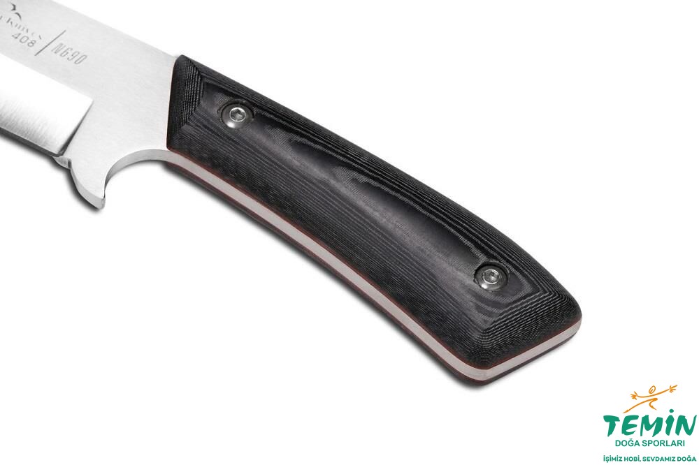 Bıçak üzerinde görünen bağlantı elemanları (cıvatalar) ve balçak, paslanmaz çelikten imal edilmiştir.